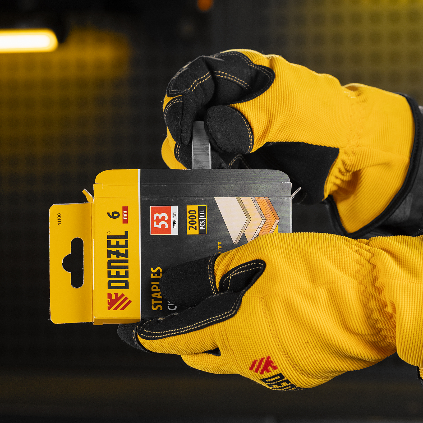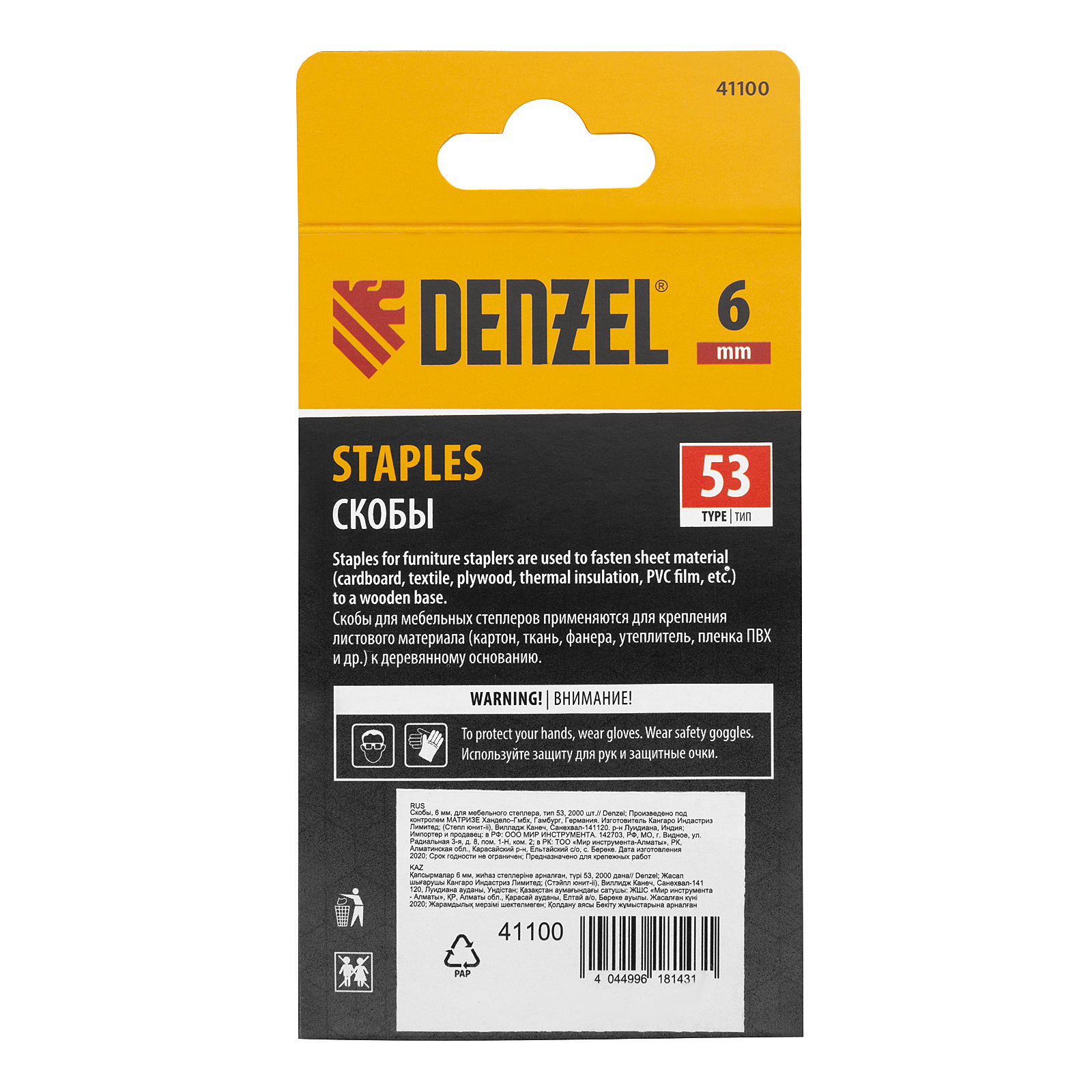 Скобы Denzel 41100 типа 53, высотой 6 мм, 2000 шт. в упаковке, — расходные материалы для мебельного степлера. Универсальные П-образные скобы подходят для фиксации картона, фанеры, ткани, пленки ПВХ, утеплителя и других материалов. Пригодятся для обшивки мебели, укладки утеплителя и выполнения других работ.