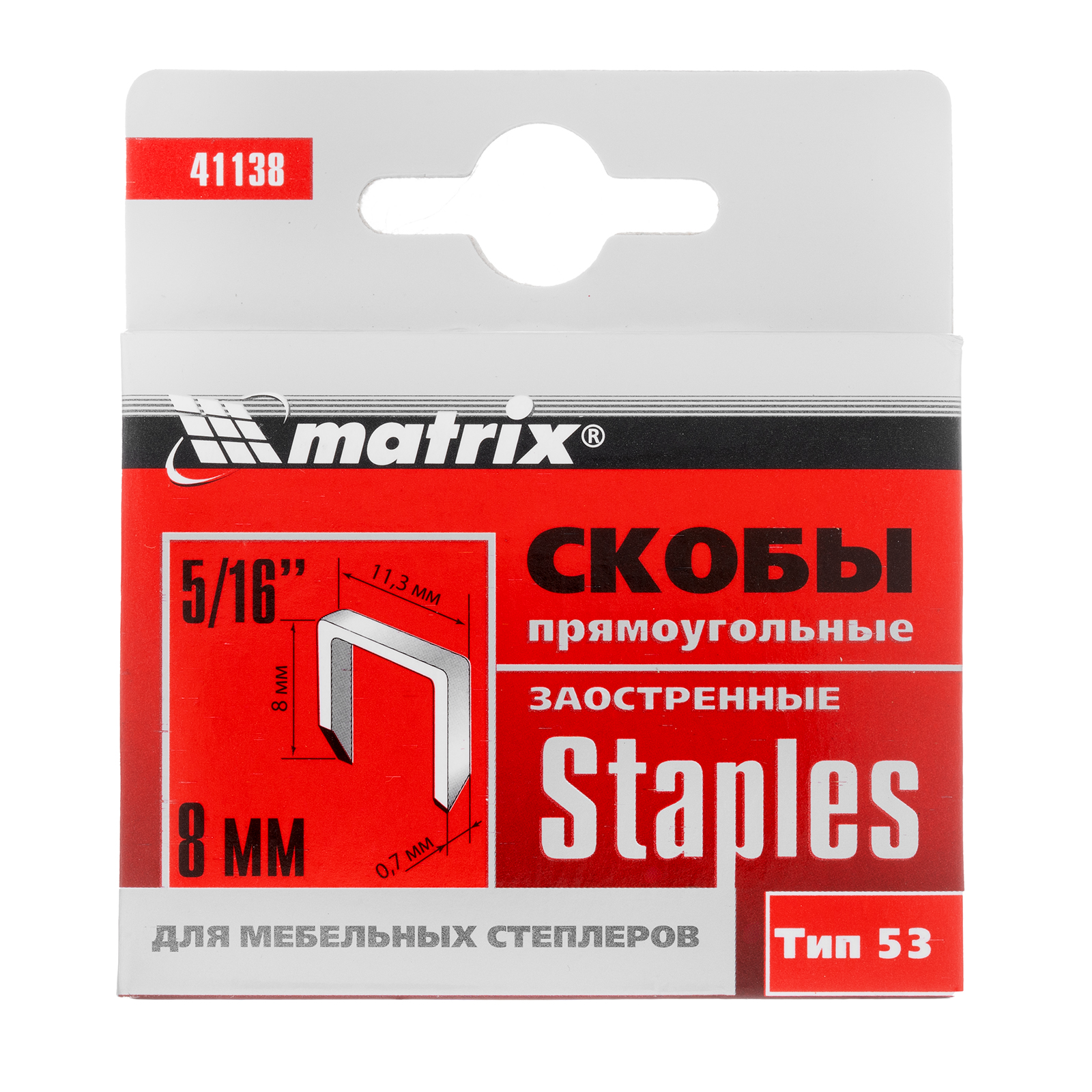 Заостренные скобы Matrix 41138 для мебельного степлера, тип 53, размером 8 х 11,3 х 1 мм, 1000 шт. в коробке, помогут обить мебель, зафиксировать утеплитель, а также выполнить другие отделочные и ремонтные работы. Скобы крепко соединяют различные материалы: древесину, фанеру, картон, ДСП.
