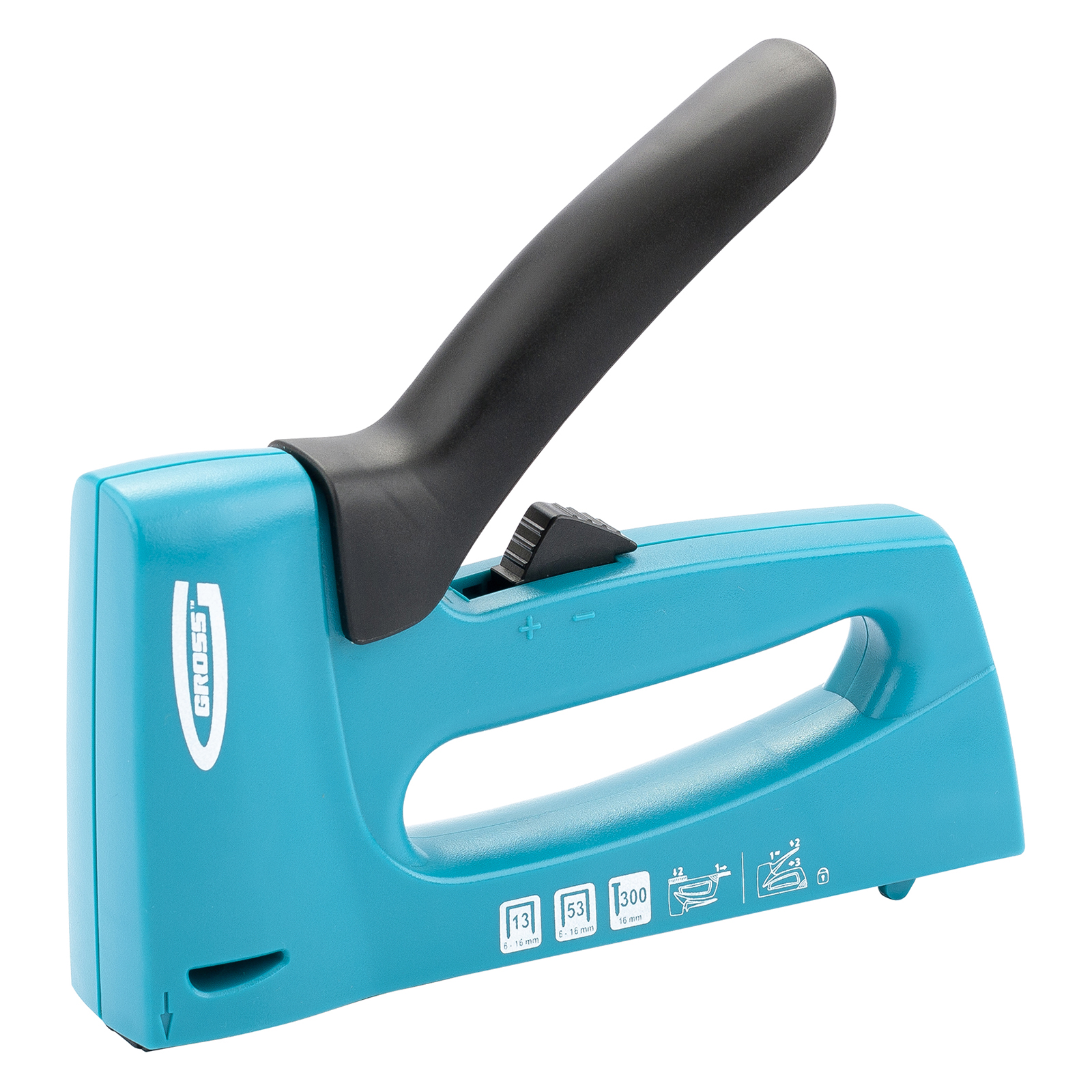 Мебельный степлер Gross 41003 в пластиковом корпусе, с функцией регулировки силы удара, совместим со скобами типа 13, 53 размером 6-16 мм и гвоздями типа 300 размером 16 мм. Его используют для быстрого крепления на деревянном основании фанеры, оргалита, ДВП, ДСП, пленки, утеплителя и других листовых материалов. Корпус устойчив к повреждениям, поскольку отлит из ударопрочного пластика. Двухпозиционный переключатель позволяет регулировать силу удара в зависимости от длины скоб и твердости материала. Действия в труднодоступных местах облегчает длинный тонкий носик. Инструмент идеально сбалансирован, что сводит отдачу к минимуму. Степлер пригодится при сборке и обшивке мебели, укладке ковровых покрытий и изоляционных материалов, выполнении багетных работ. Подходит для профессионального применения.