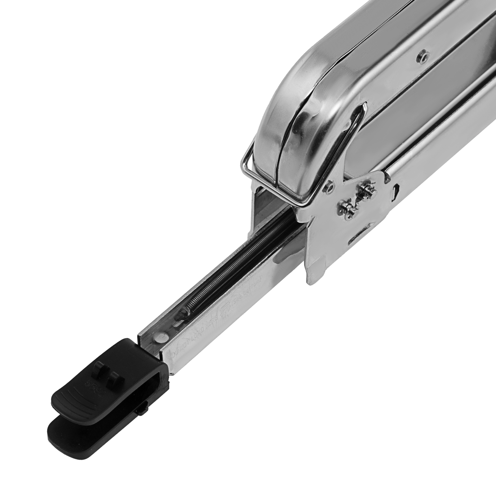 - Безопасность хранения и транспортировки — скоба-фиксатор удерживает рукоятку в нерабочем положении, предотвращая самопроизвольное срабатывание степлера.