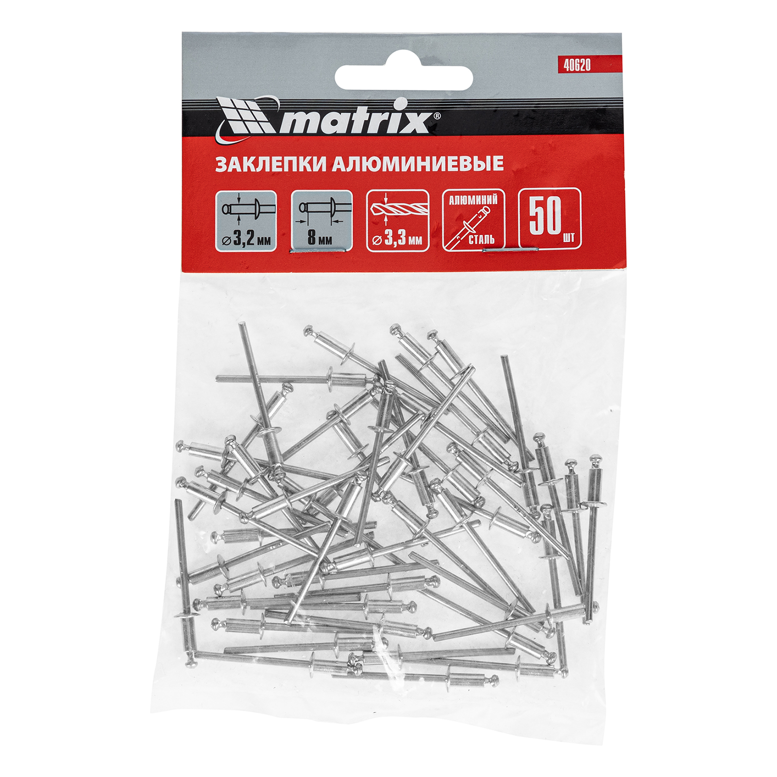 Заклепки Matrix 40620 размером 3,2 х 8 мм, 50 шт. в упаковке, предназначены для соединения листовых заготовок. Обеспечивают надежную фиксацию материалов даже при наличии доступа только с одной стороны. Используются в строительстве домов, для возведения заборов из профлиста, при производстве оборудования, будут полезны в домашней мастерской.
