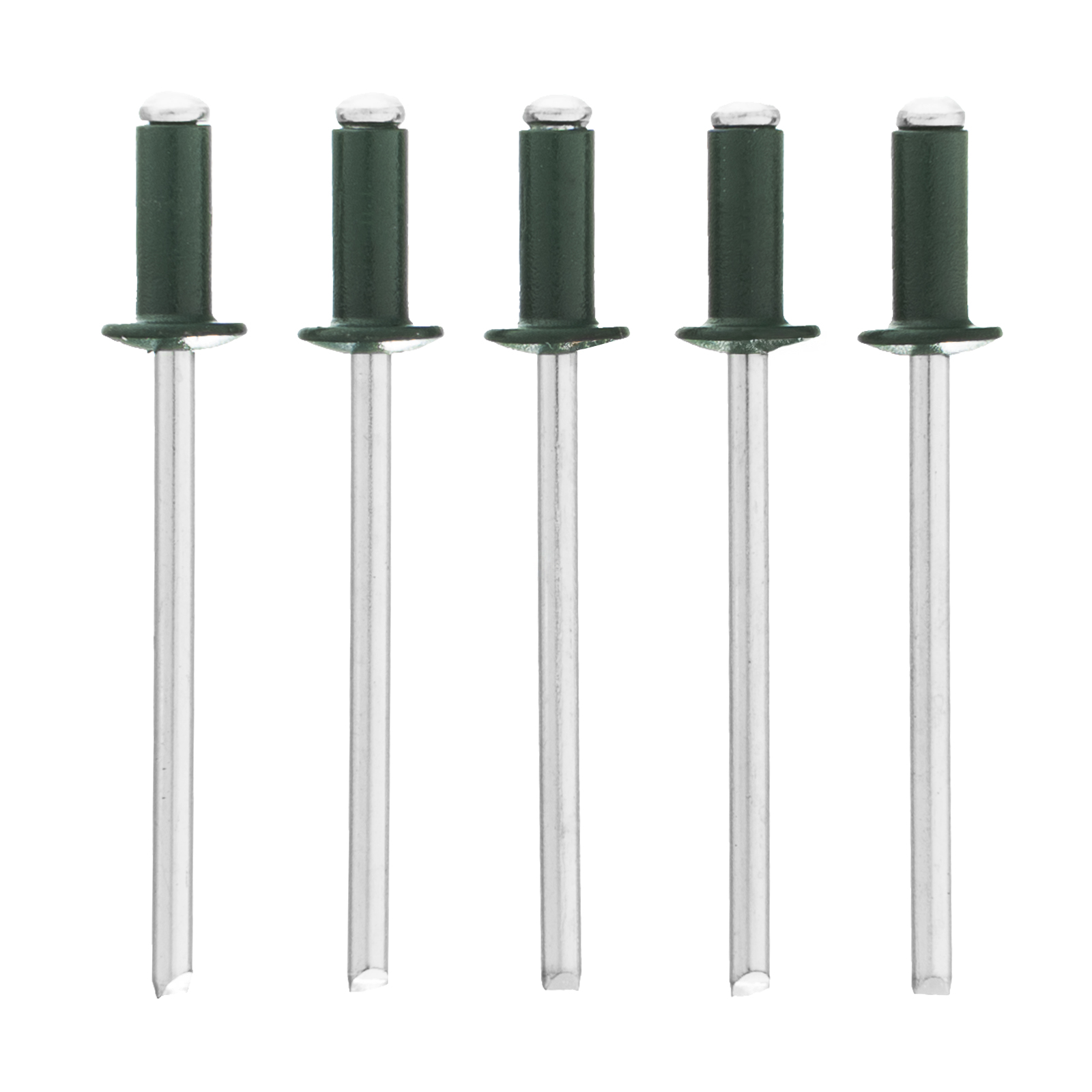 Заклепки Matrix 40674 темно-зеленого цвета (RAL 6005), размером 3,2 х 8 мм, 50 шт. в упаковке, — соединительные элементы вытяжного типа, которые используются для скрепления плоских заготовок. Позволяют создать надежное неразъемное соединение даже при одностороннем доступе к месту крепления. Применяются в профессиональной и бытовой сфере.