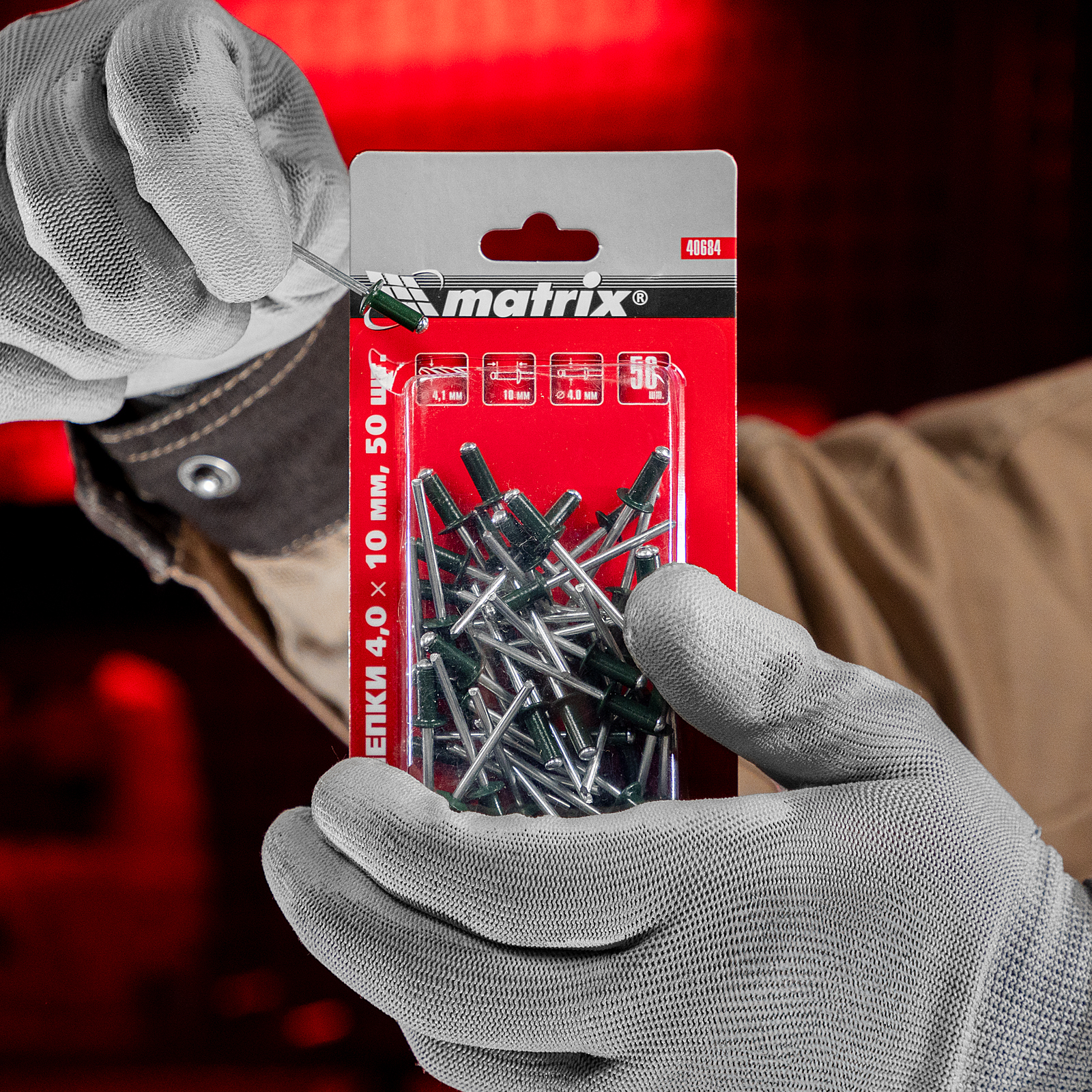 Заклепки Matrix 40684 темно-зеленого цвета (RAL 6005), размером 4,0 х 10 мм, 50 шт. в упаковке, — соединительные элементы вытяжного типа, которые используются для скрепления плоских заготовок. Позволяют создать надежное неразъемное соединение даже при одностороннем доступе к месту крепления. Применяются в профессиональной и бытовой сфере.
