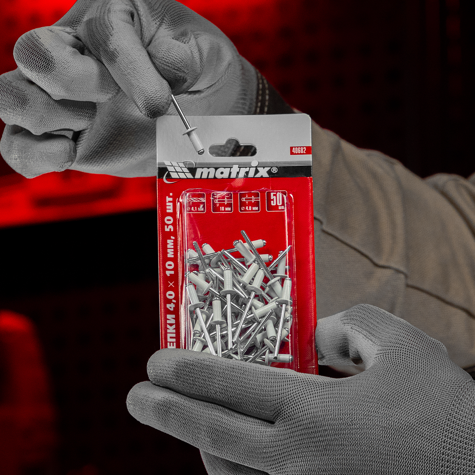 Заклепки Matrix 40682 сигнально-белого цвета (RAL 9003), размером 4,0 х 10 мм, 50 шт. в упаковке, — соединительные элементы вытяжного типа, которые используются для скрепления плоских заготовок. Позволяют создать надежное неразъемное соединение даже при одностороннем доступе к месту крепления. Применяются в профессиональной и бытовой сфере.