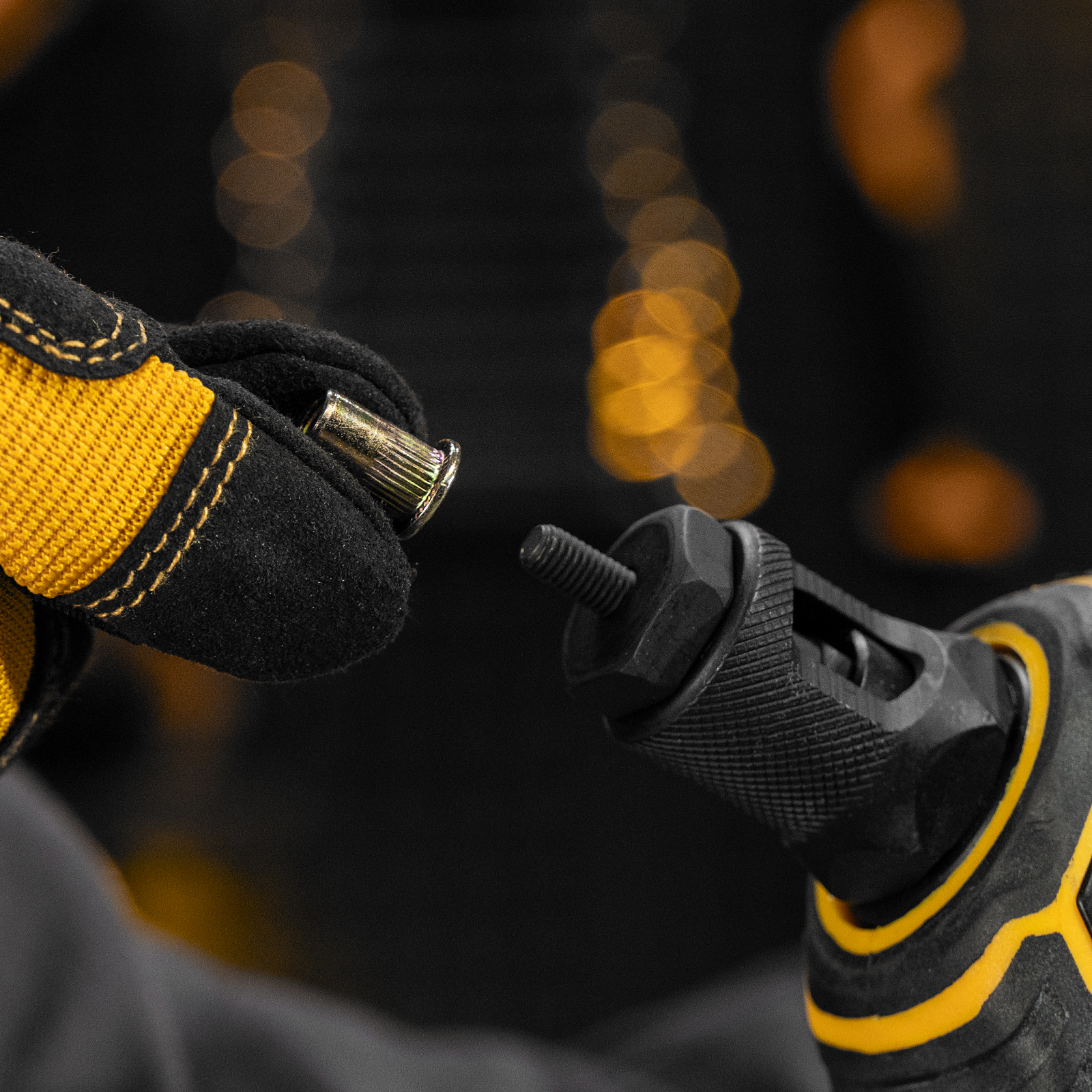 - Удобное хранение и транспортировка — заклепки поставляются в прочном пластиковом кейсе с защелкой.