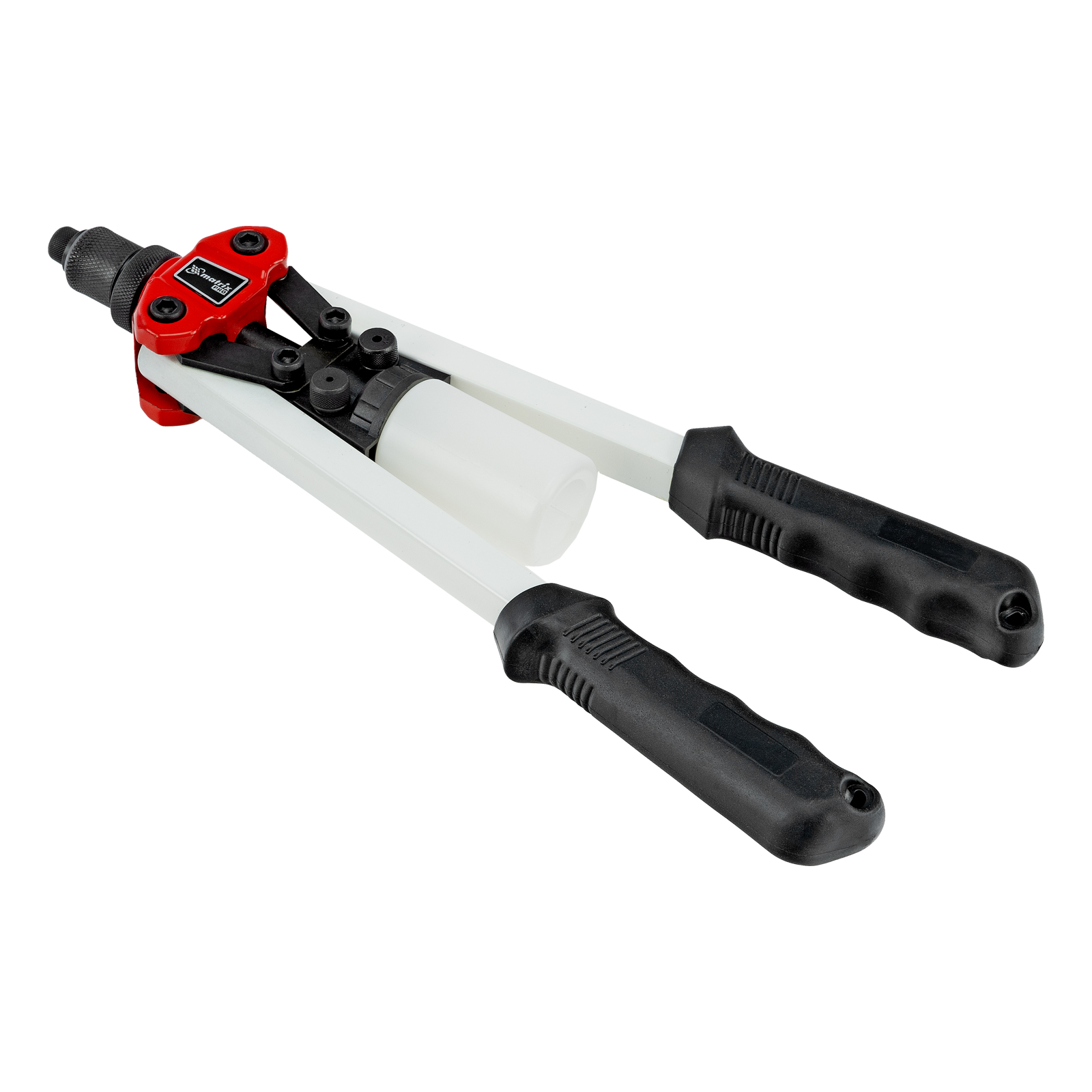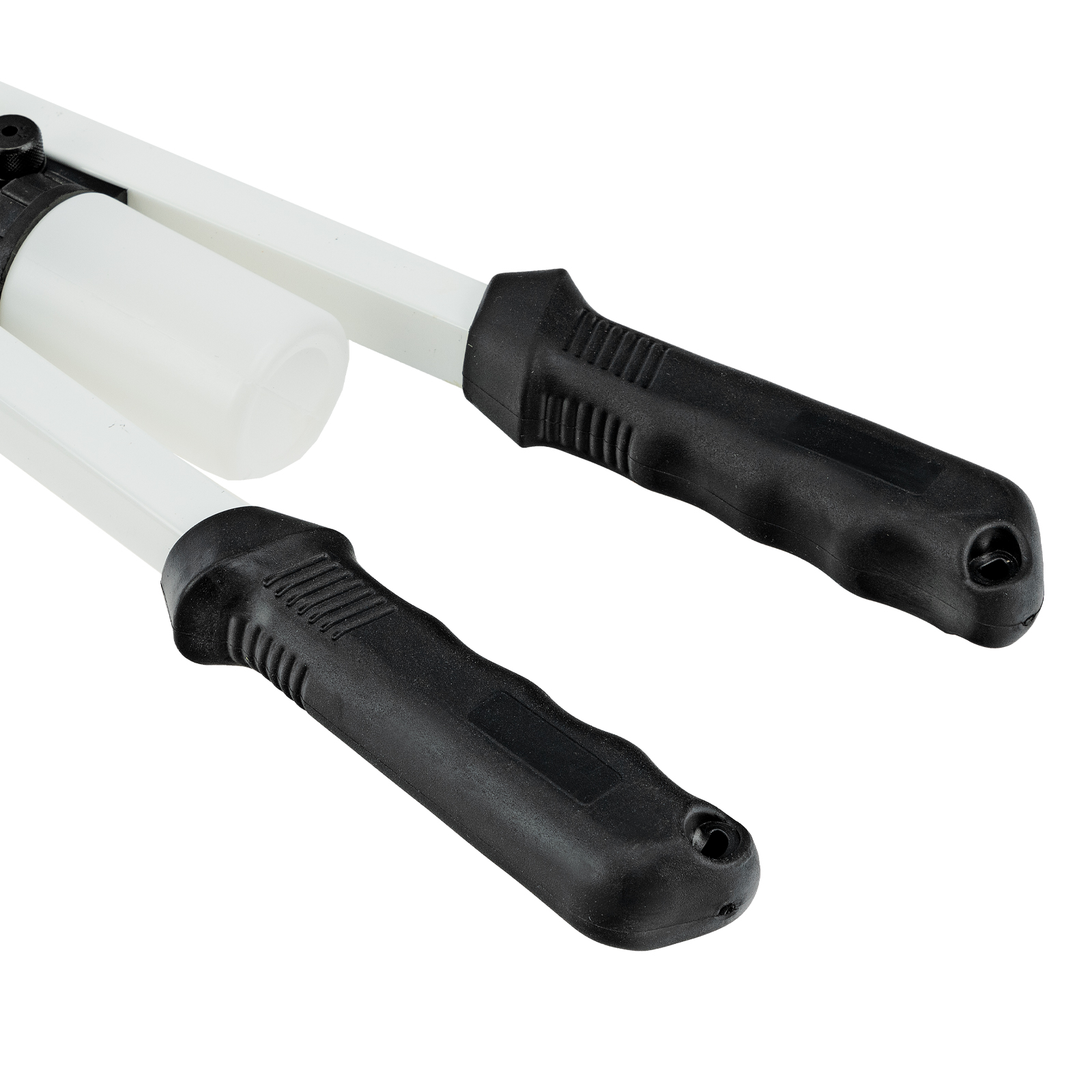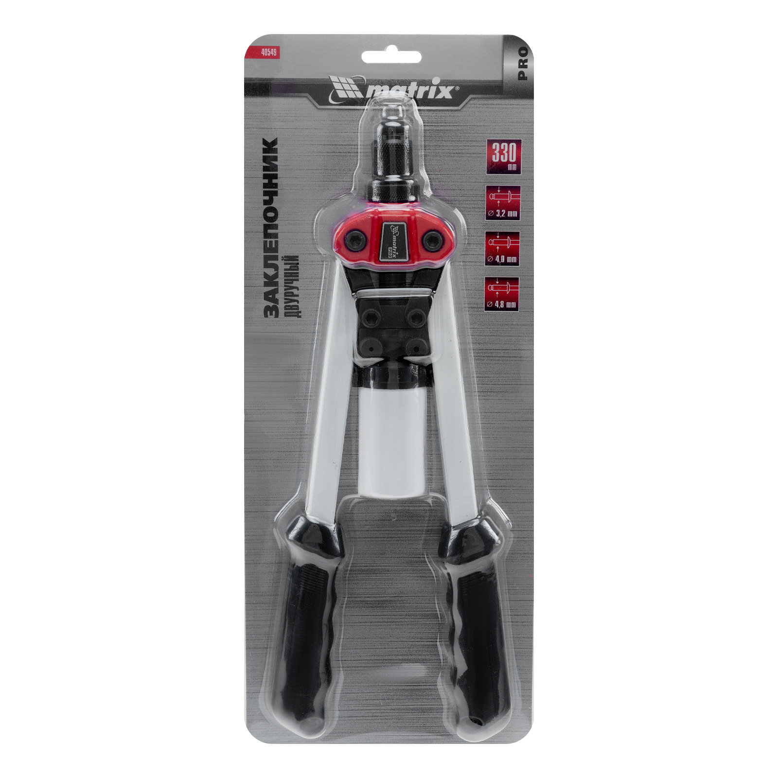 Двуручный заклепочник Matrix PRO 40549 длиной 330 мм используется для соединения металлических листов и профилей с помощью вытяжных заклепок диаметром 3,2-4,0-4,8 мм. Заклепочник позволяет уменьшить нагрузку на кисть (в сравнении с заклепочниками для работы одной рукой), перераспределив ее на две руки. Инструмент применяется в профессиональной и бытовой сфере.