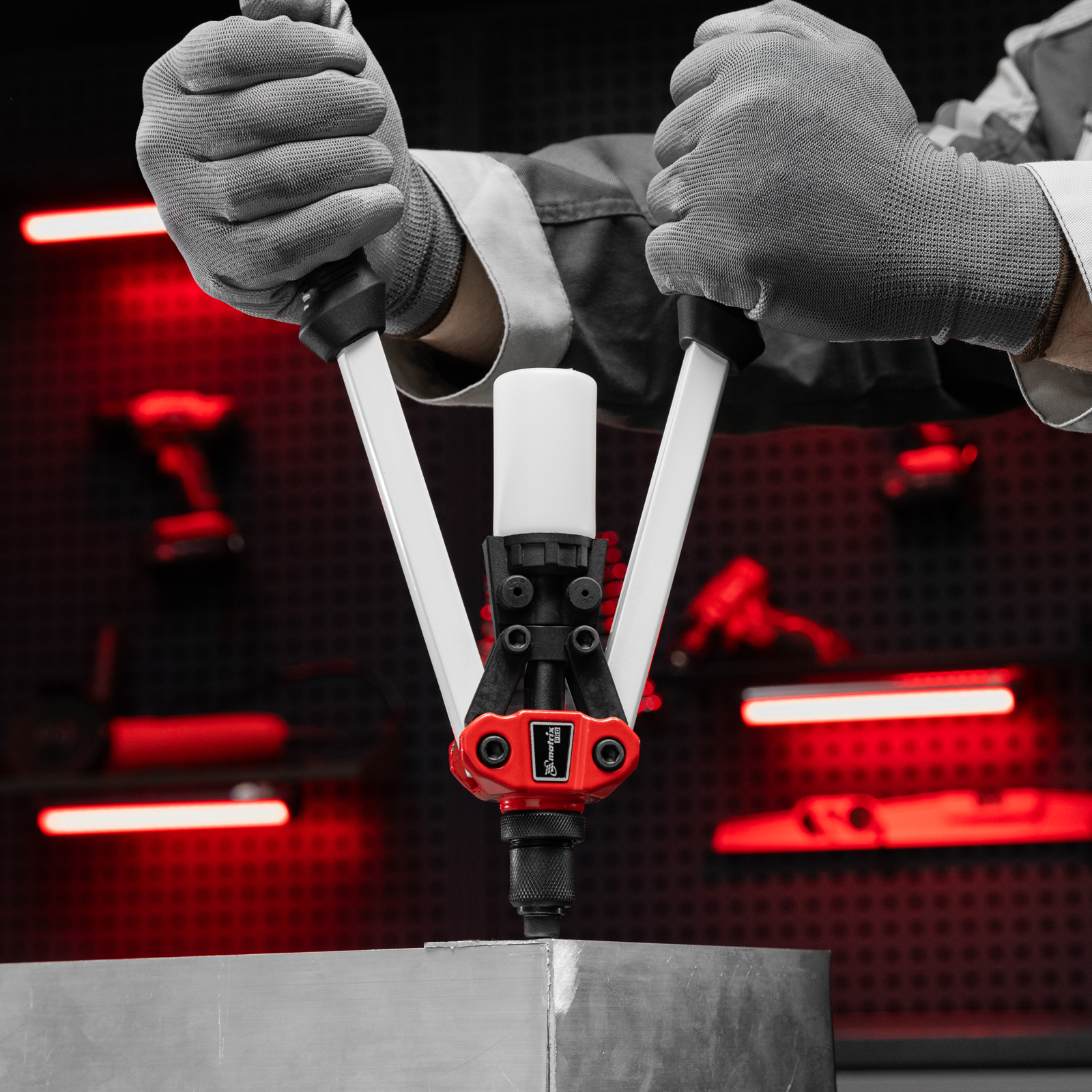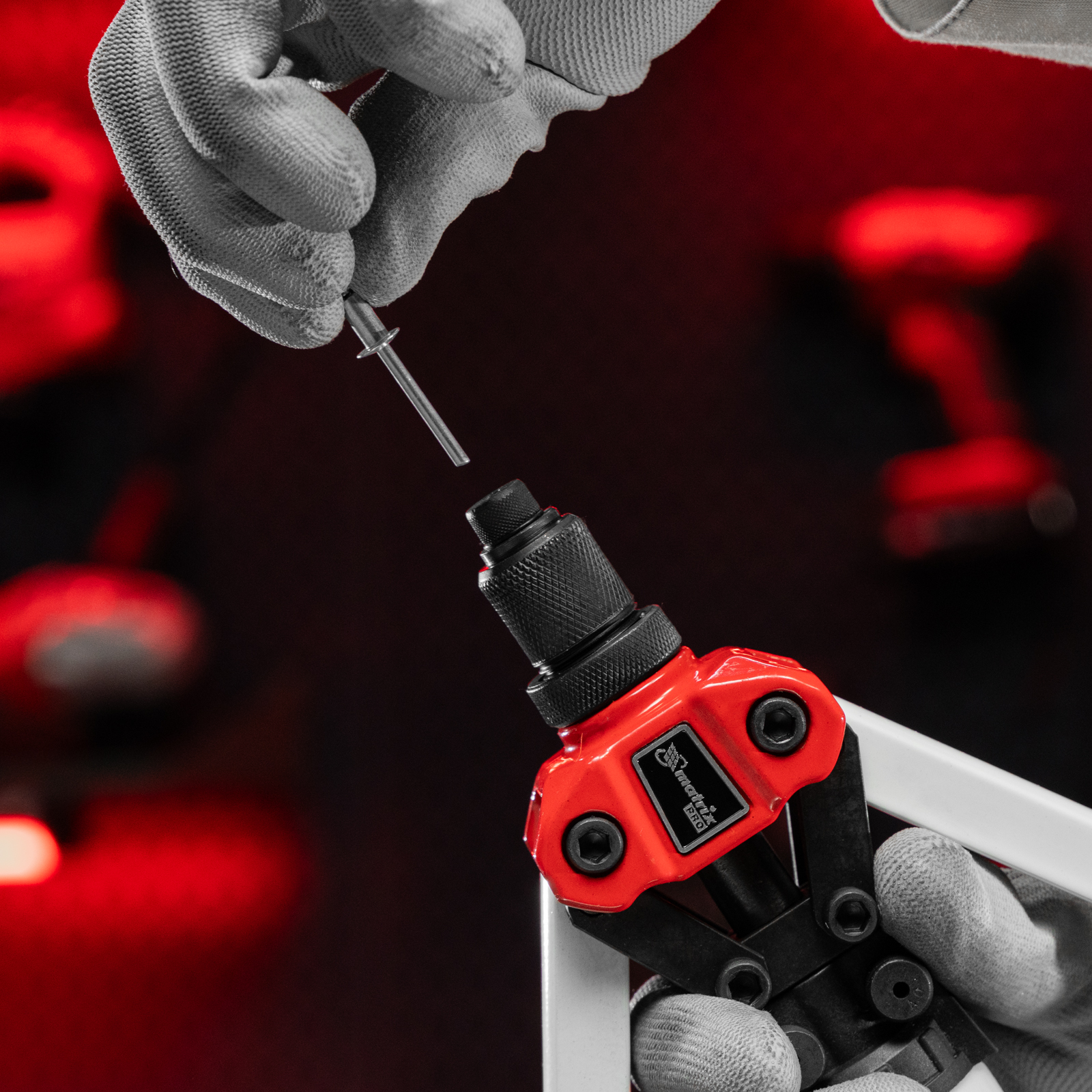 - Эффективная работа — трехсегментный цанговый механизм из хромомолибденовой стали надежно удерживает стержень заклепки.