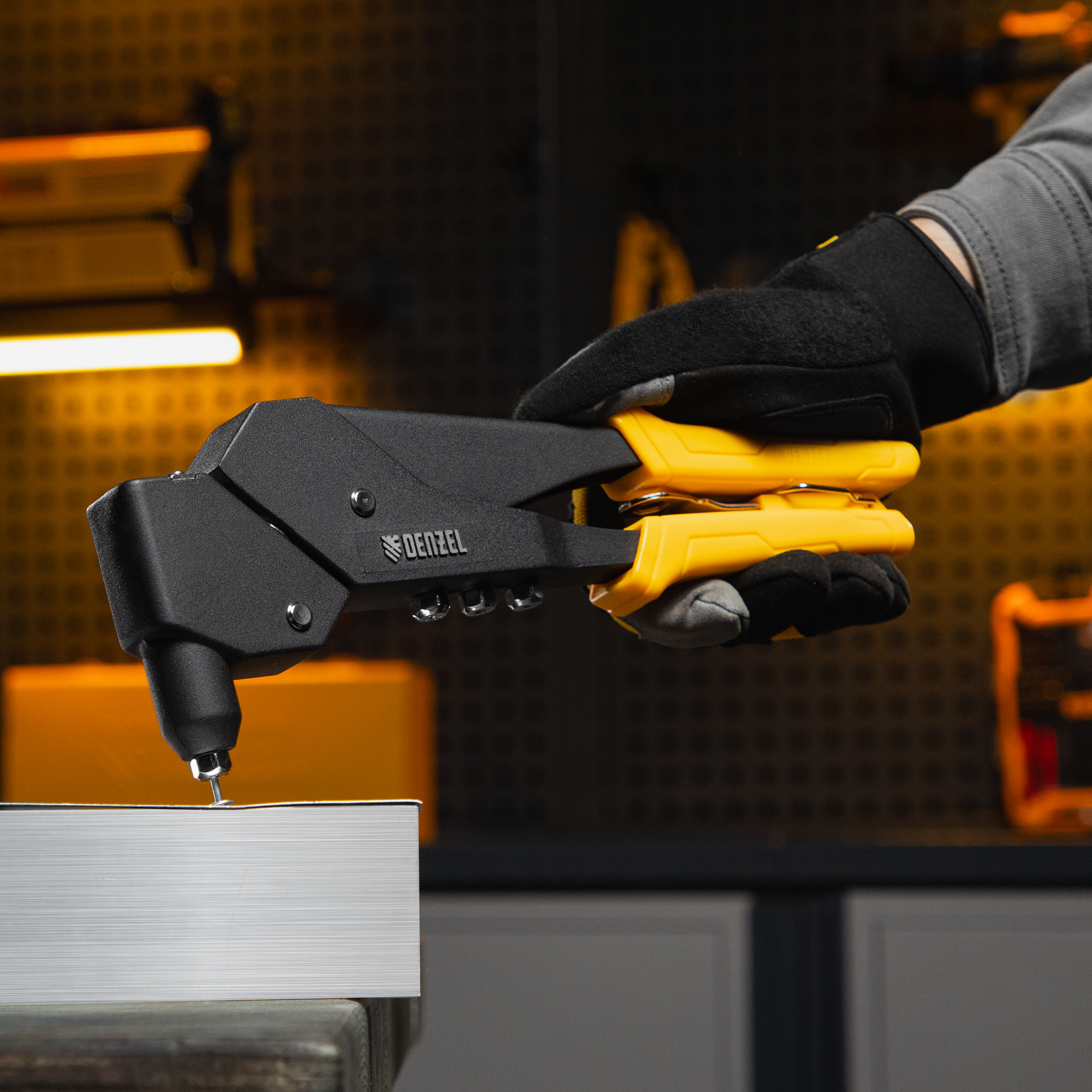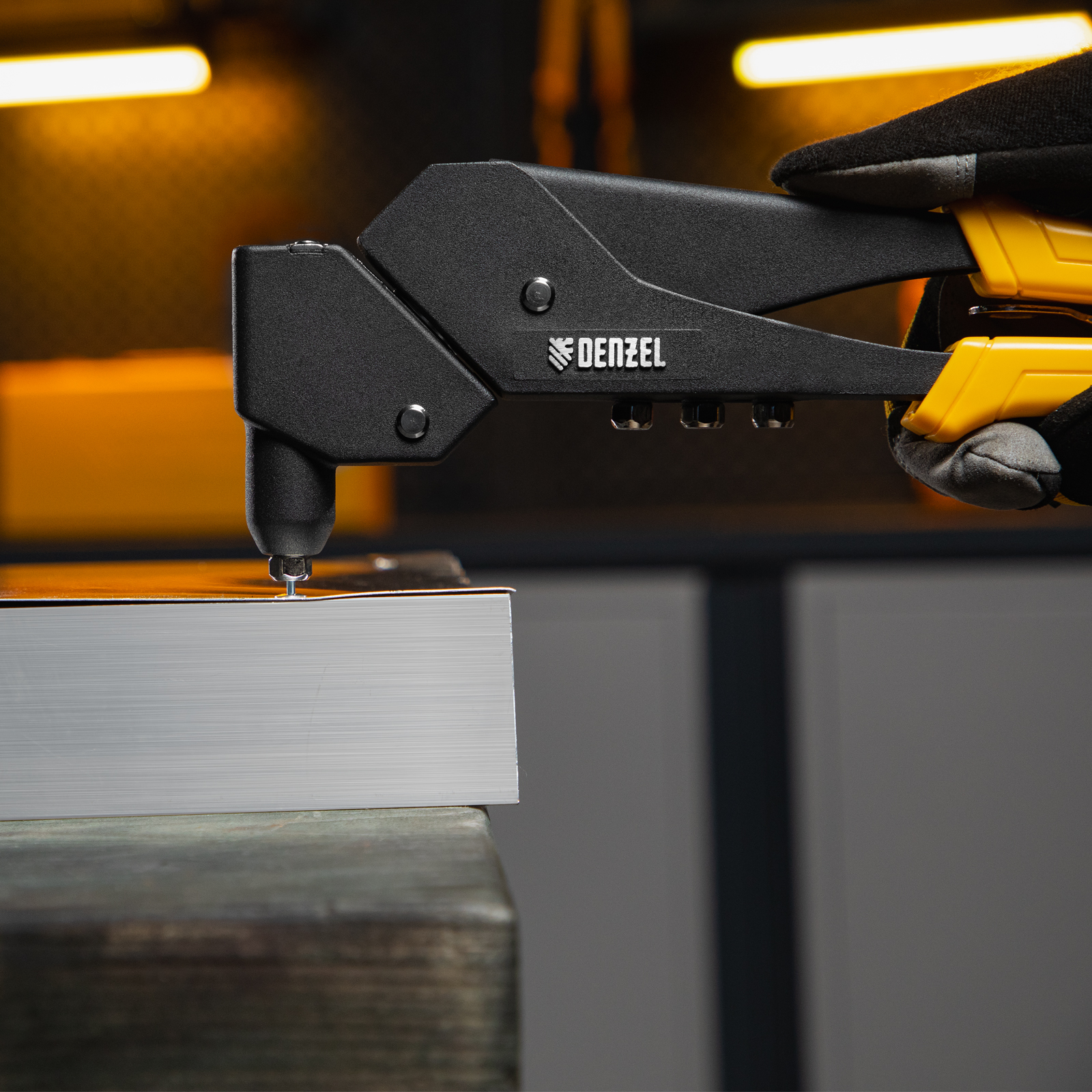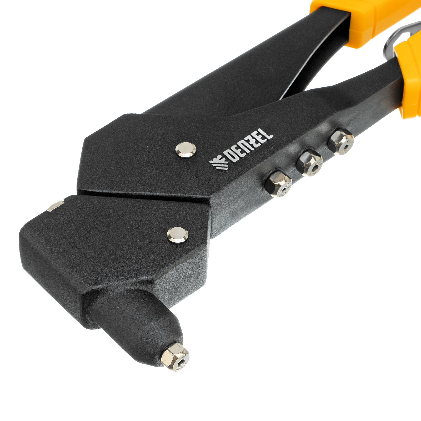 Заклепочник ручной литой Denzel 40442 длиной 285 мм, поворотный на 0-360°, используется для создания неразъемных соединений с помощью алюминиевых вытяжных заклепок диаметром 2,4-3,2-4,0-4,8 мм, стальных диаметром 2,4-3,2-4,0 мм и вытяжных заклепок из «нержавейки» диаметром 2,4-3,2 мм. Голова инструмента вращается на 360°, что упрощает работу в стесненных условиях. Заклепочник пригодится на производстве, в ремонтной мастерской, а также в быту.