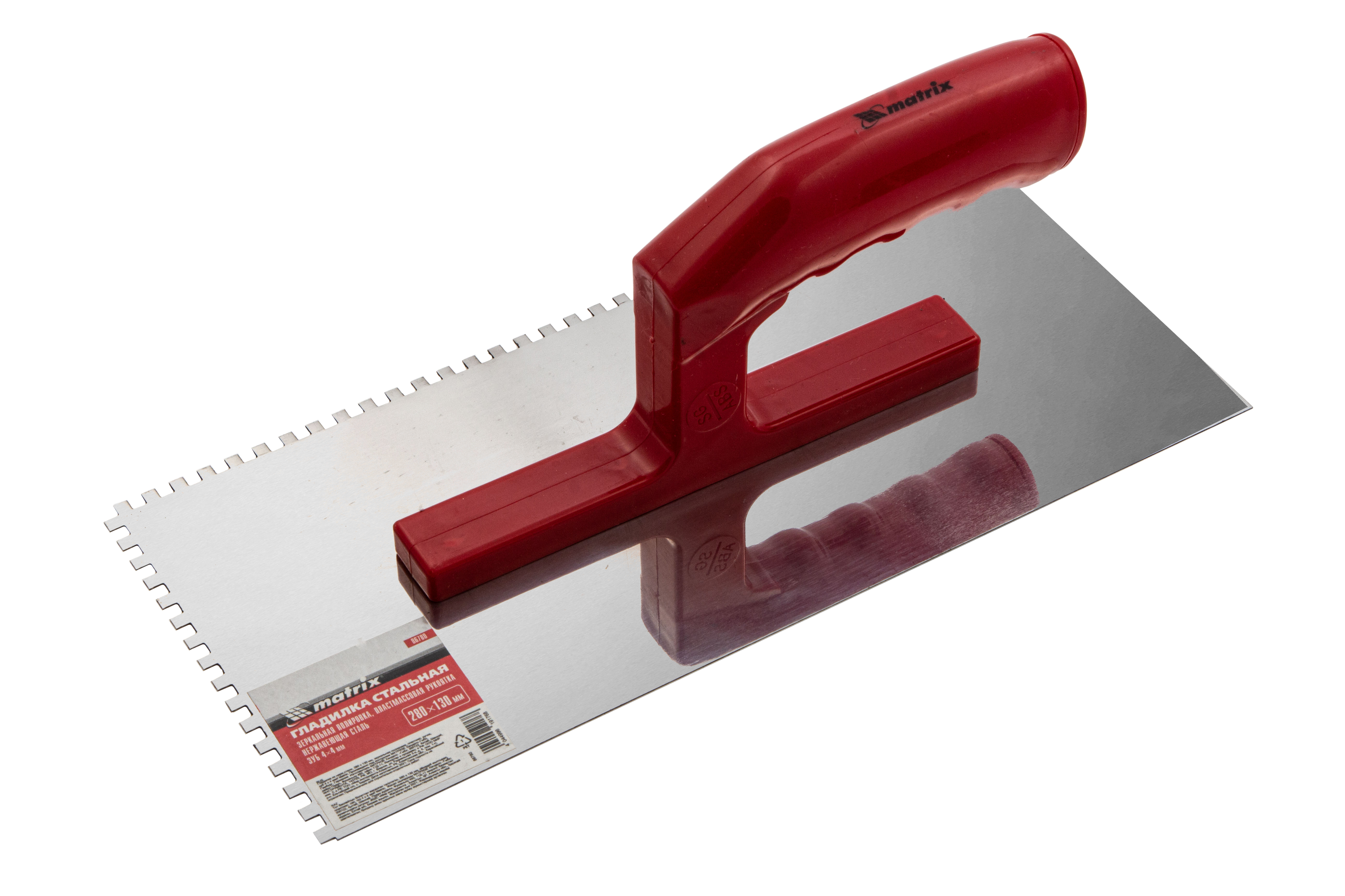 Гладилка Matrix 86780 размером 280 x 130 мм, из нержавеющей стали, с зубьями 4 x 4 мм, зеркальной полировкой и пластмассовой ручкой, пригодится любителям и частным мастерам при проведении ремонтных работ. Она позволяет равномерно наносить строительные растворы и плиточный клей на подготовленные под отделку поверхности.