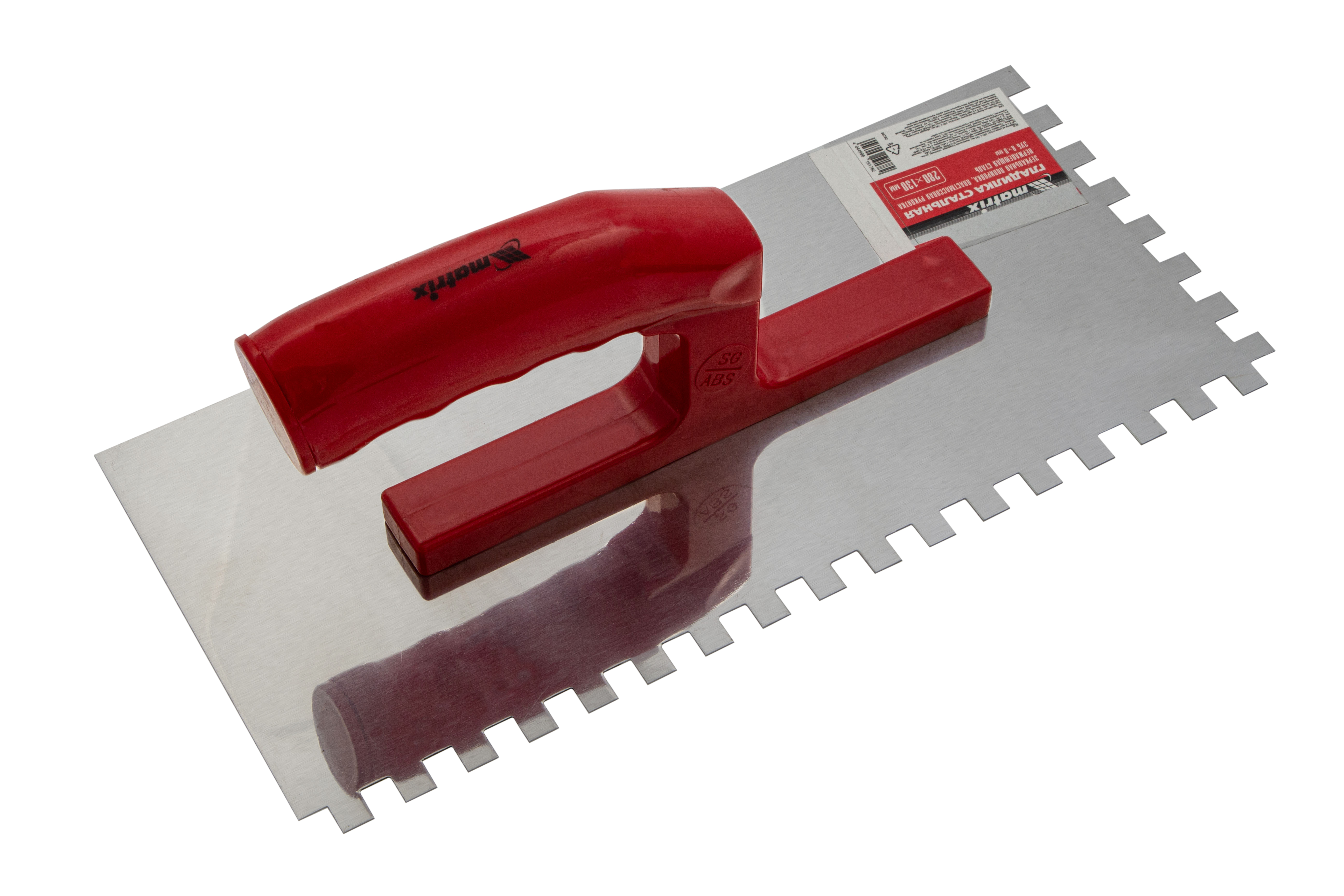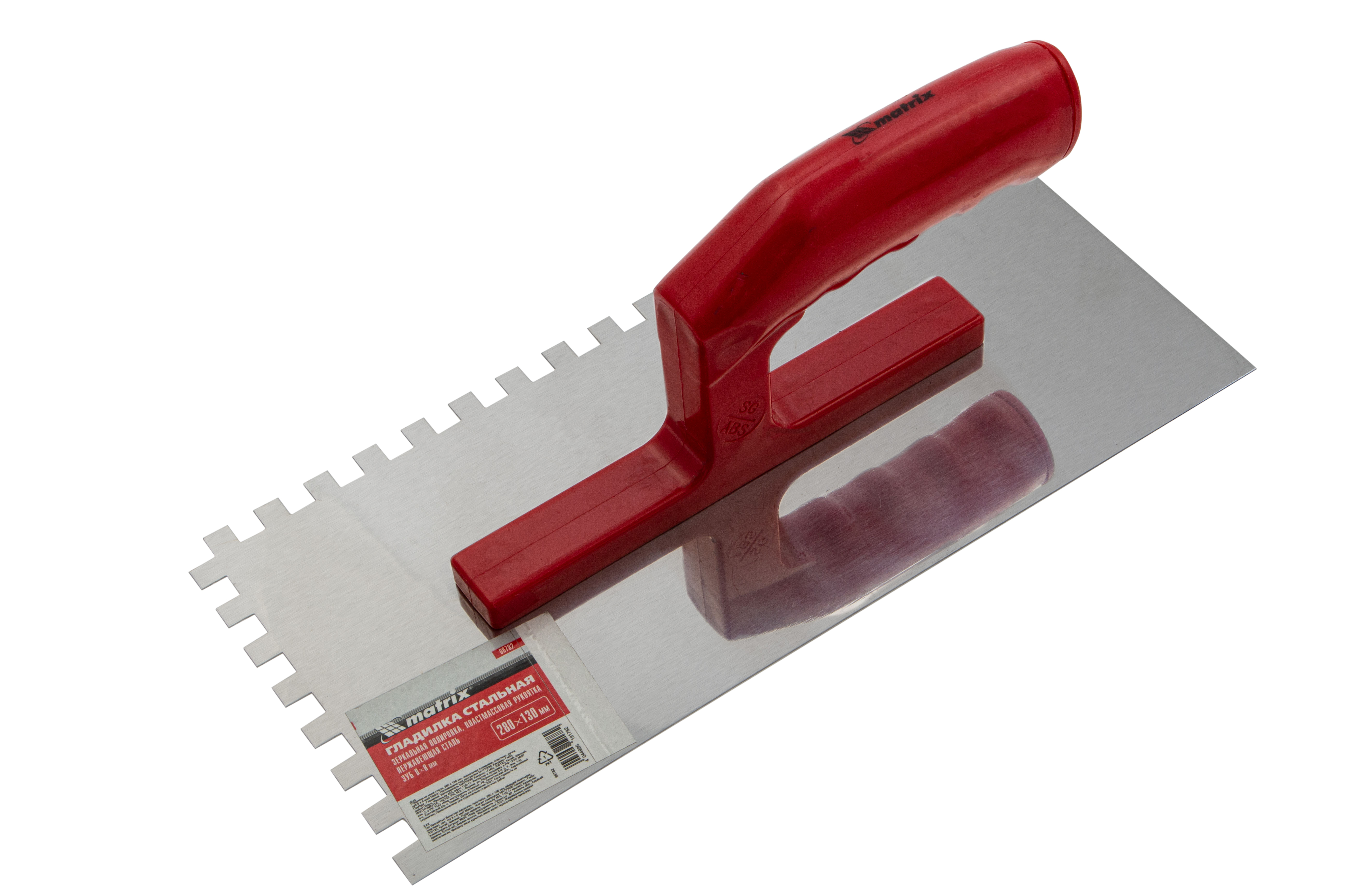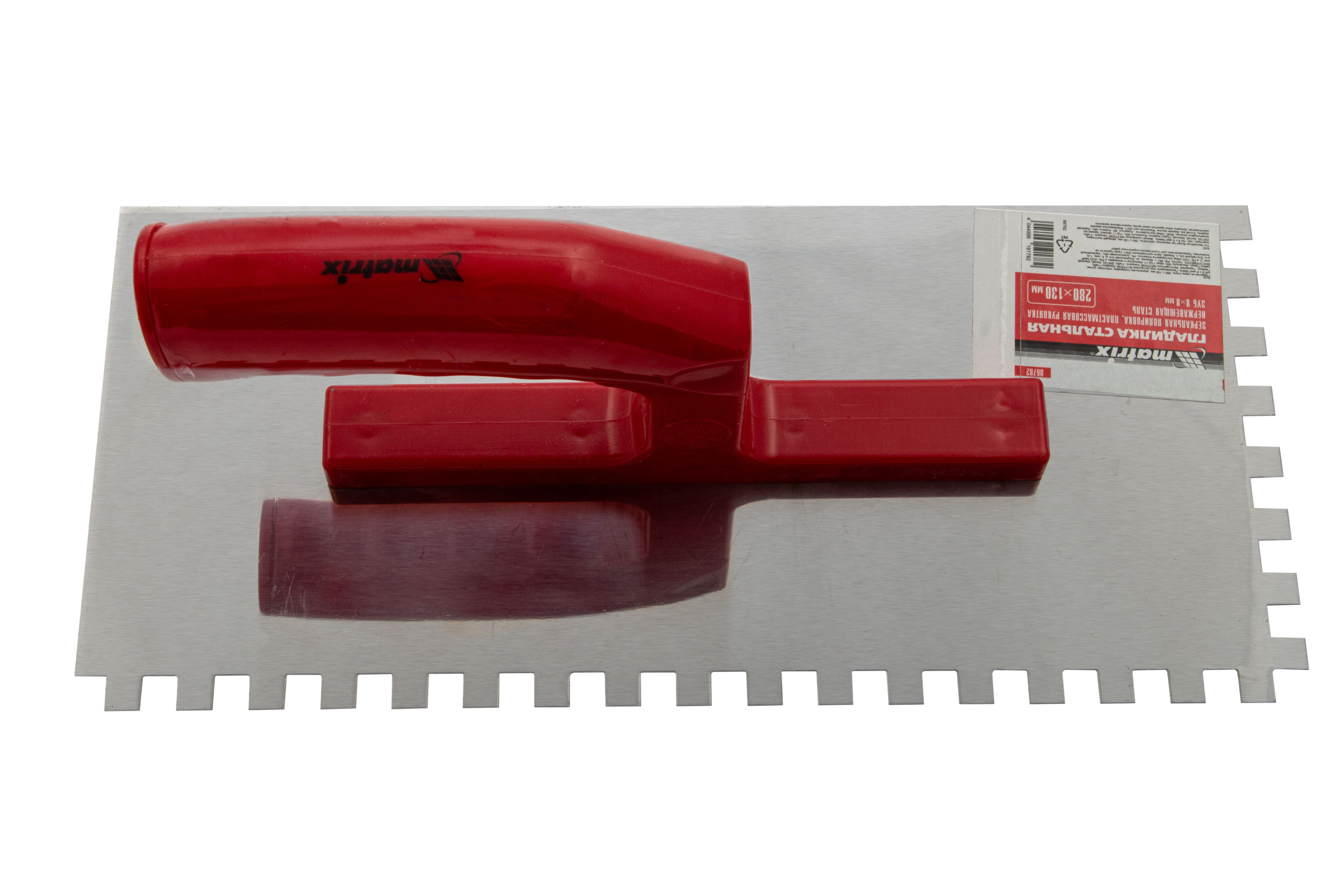 Гладилка Matrix 86782 размером 280 x 130 мм, из нержавеющей стали, с зубьями 8 x 8 мм, зеркальной полировкой и пластмассовой ручкой, пригодится любителям и частным мастерам при проведении ремонтных работ. Она позволяет равномерно наносить строительные растворы и плиточный клей на подготовленные под отделку поверхности.