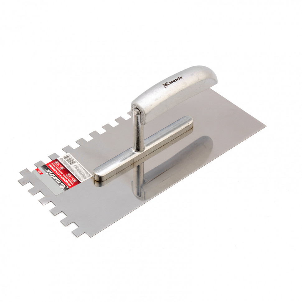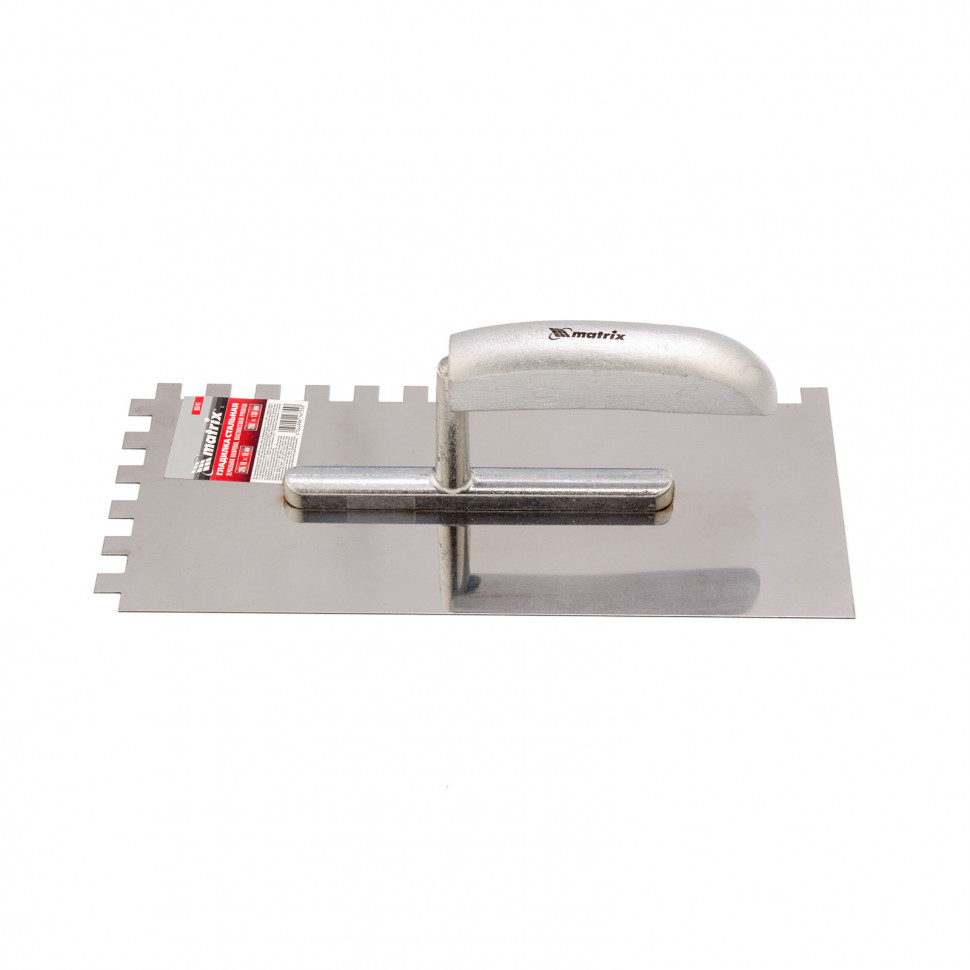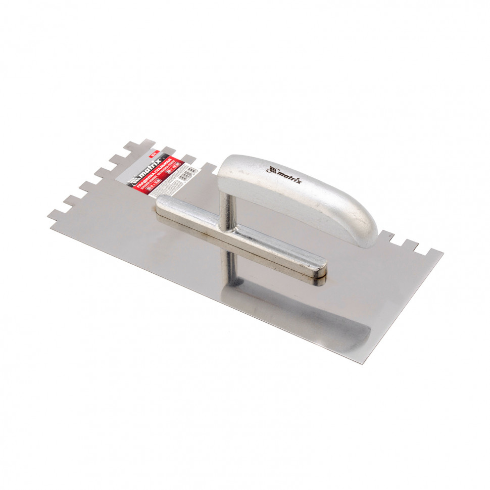 Гладилка Matrix 86741 размером 280 x 130 мм, с зубьями 10 х 10 мм, из нержавеющей стали, с деревянной ручкой, позволяет ровным слоем наносить на поверхности штукатурку и клеевые растворы. Зеркальная полировка снижает риск прилипания материала к полотну, благодаря чему покрытие получается идеально гладким.
