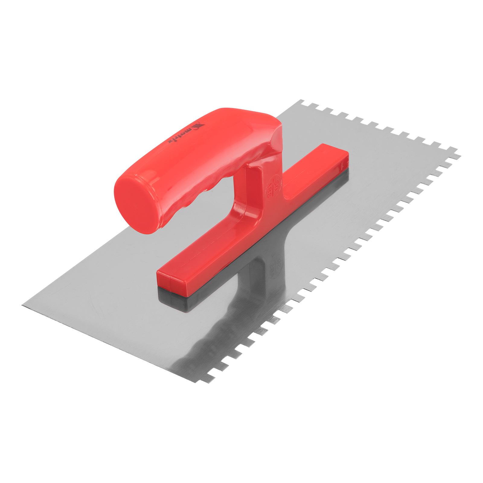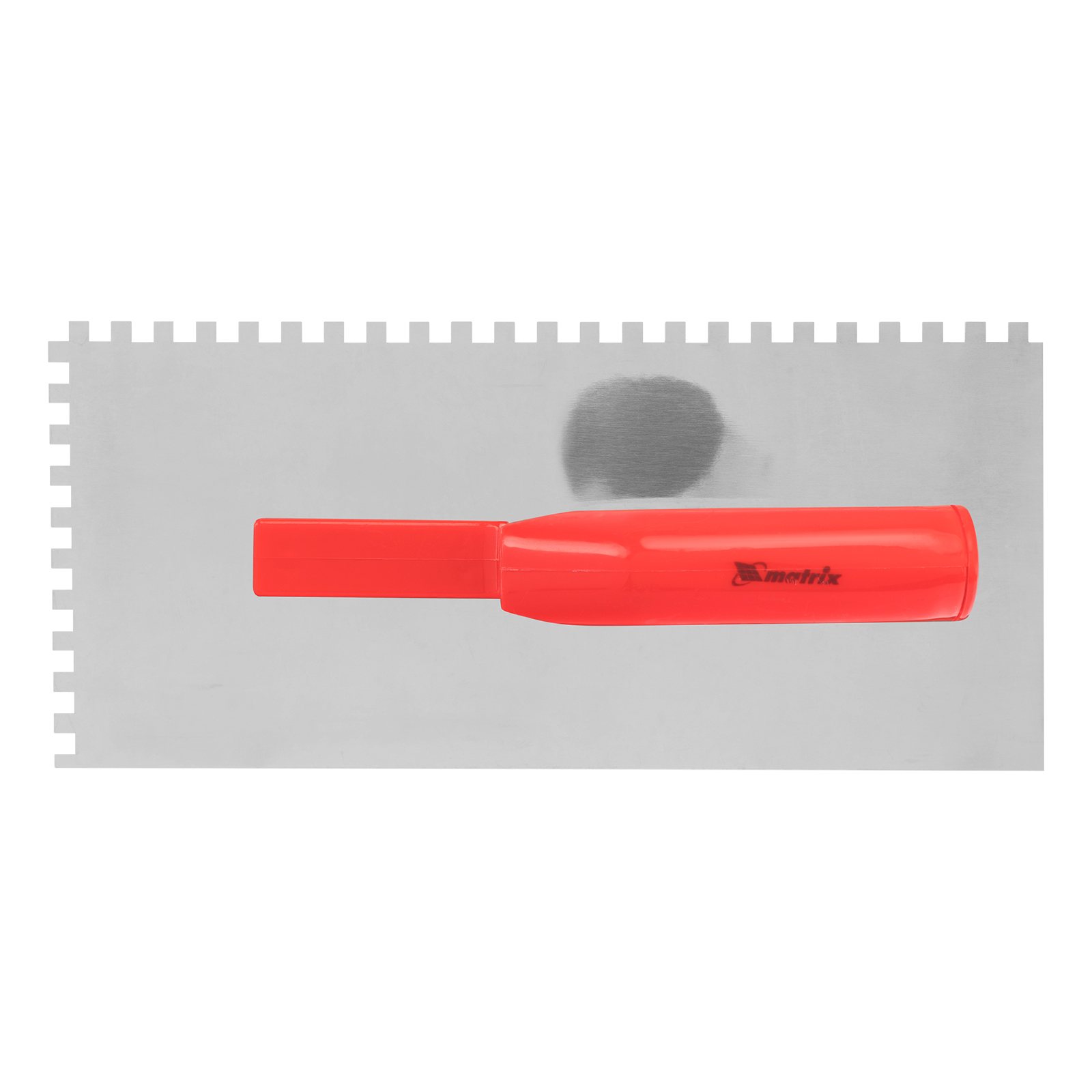 Стальная гладилка Matrix 86775 размером 280 x 130 мм, с зеркальной полировкой и пластмассовой ручкой, предназначена для равномерного распределения штукатурных растворов и клеевых составов по поверхности. Используется во время проведения отделочных работ.