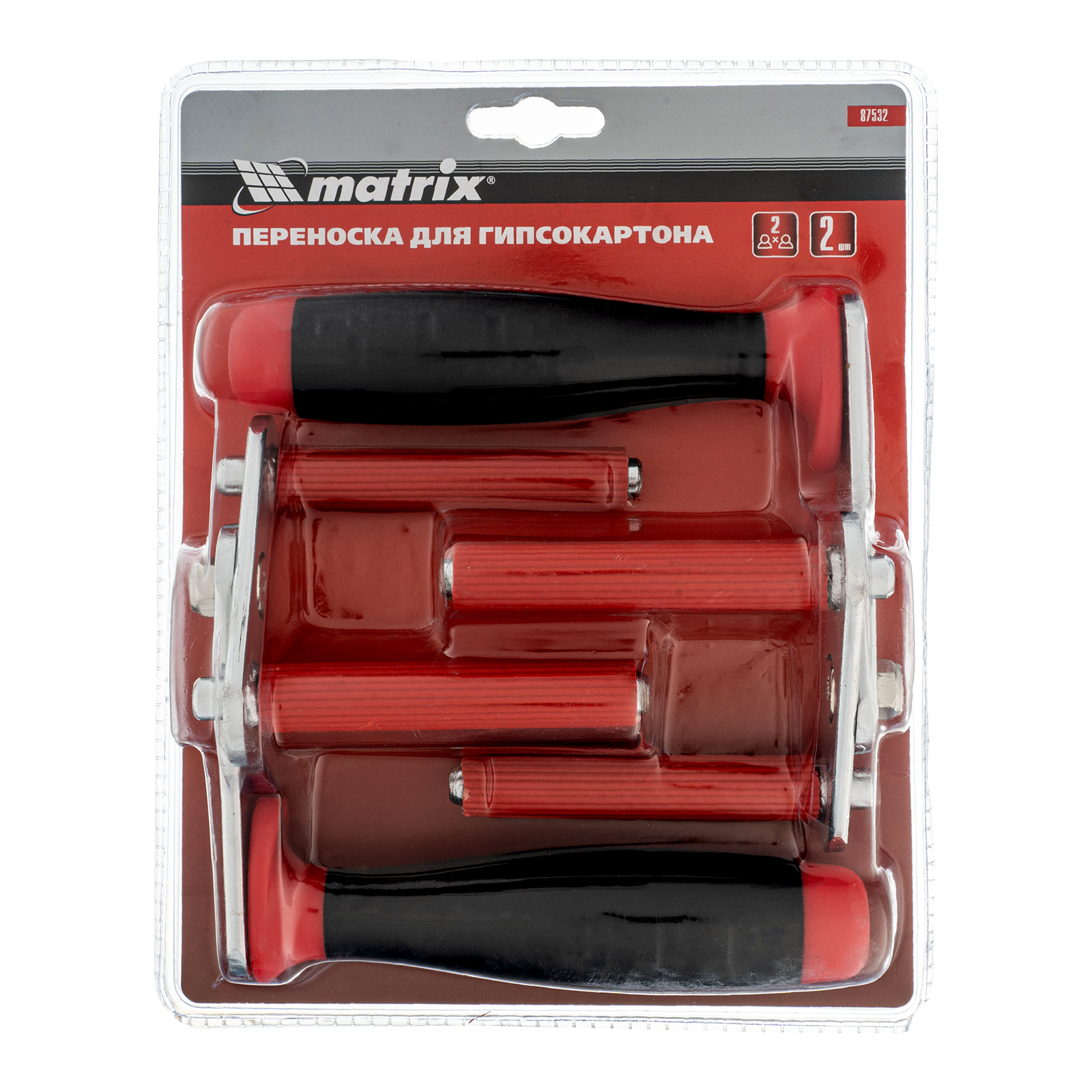 Переноска для гипсокартона Matrix 87532 входит в комплект из 2 шт. Используется для перемещения больших гипсокартонных листов и предназначена для работы в паре. Пригодится для разгрузки и погрузки материалов, проведения отделочных работ.