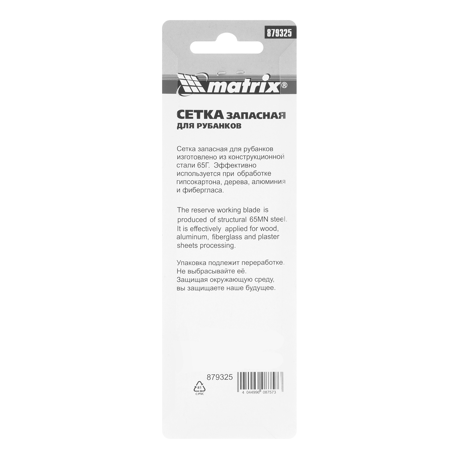 Запасная сетка Matrix 879325 размером 140 х 40 мм — сменное полотно к рубанкам для гипсокартона 87906, 87910. Используется для выравнивания кромок гипсокартонных листов, а также для обработки фибергласовых, пластмассовых и деревянных поверхностей. Будет полезна во время ремонтных и отделочных работ.