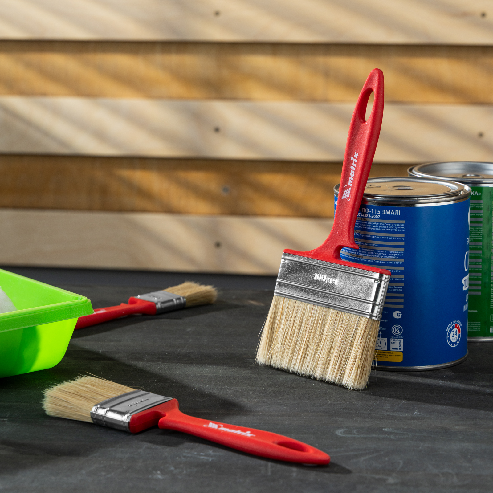 - Эргономичность — форма рукоятки продумана таким образом, чтобы мастер не уставал даже при длительной работе, специальный вырез позволяет зафиксировать кисть на малярном ведре или банке.