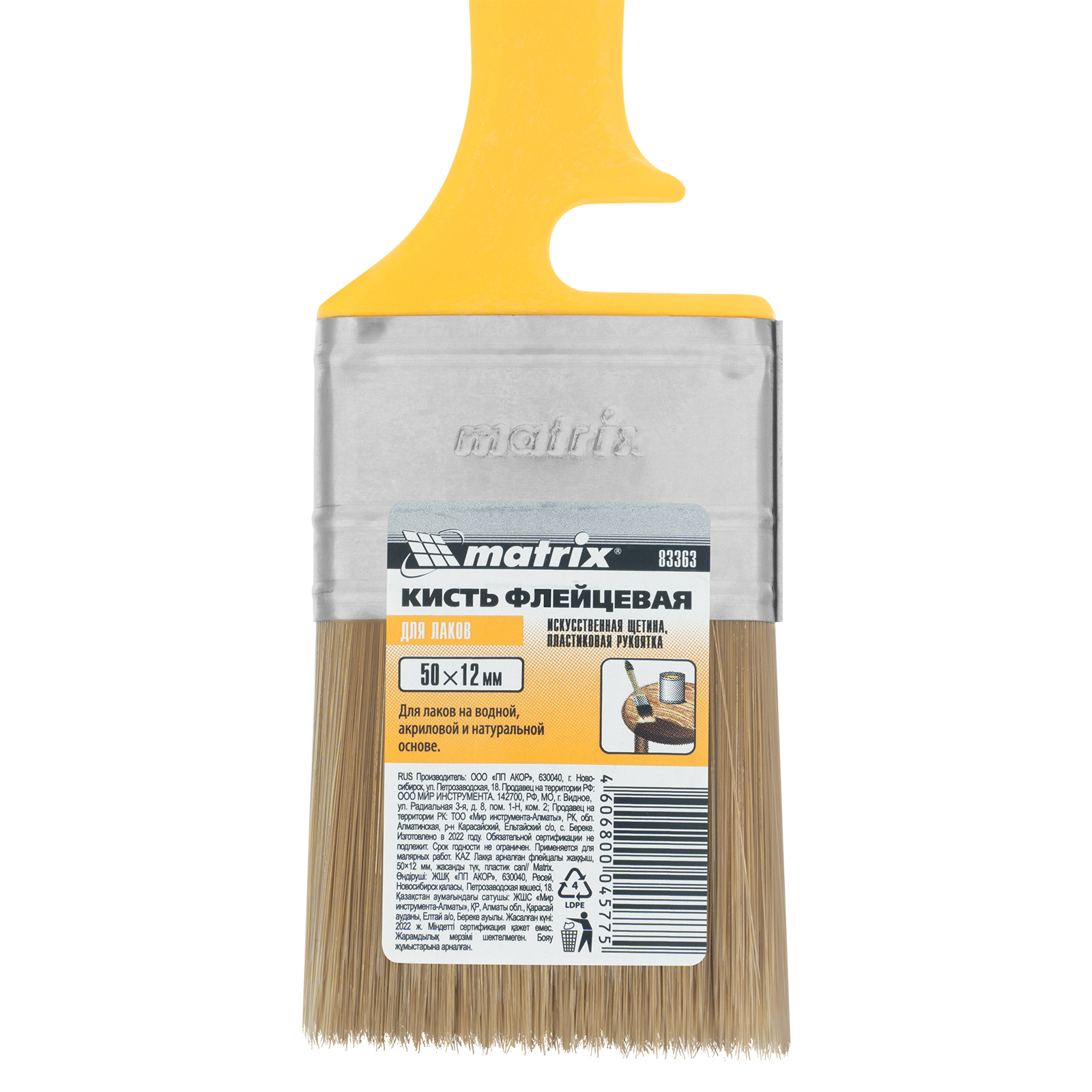 Флейцевая кисть Matrix Color Line «ЛАКИ» 83363 шириной 50 мм и толщиной 12 мм используется для отделочных работ с применением лаков на акриловой, водной и натуральной основе. Ею удобно лакировать небольшие участки. Искусственная щетина отличается повышенной упругостью, поэтому кисть обеспечивает высокое качество работ.