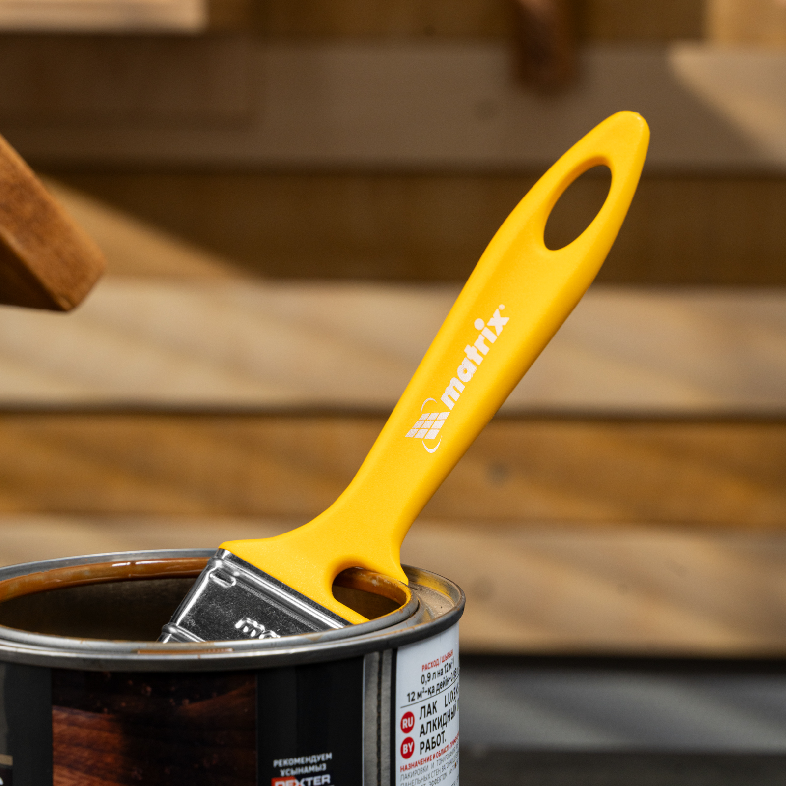 - Продуманное хранение — в рукоятке имеется отверстие для подвешивания кисти, а на время перерыва в работе инструмент можно закрепить на краю ведра или банки — для этого предусмотрена специальная выемка.