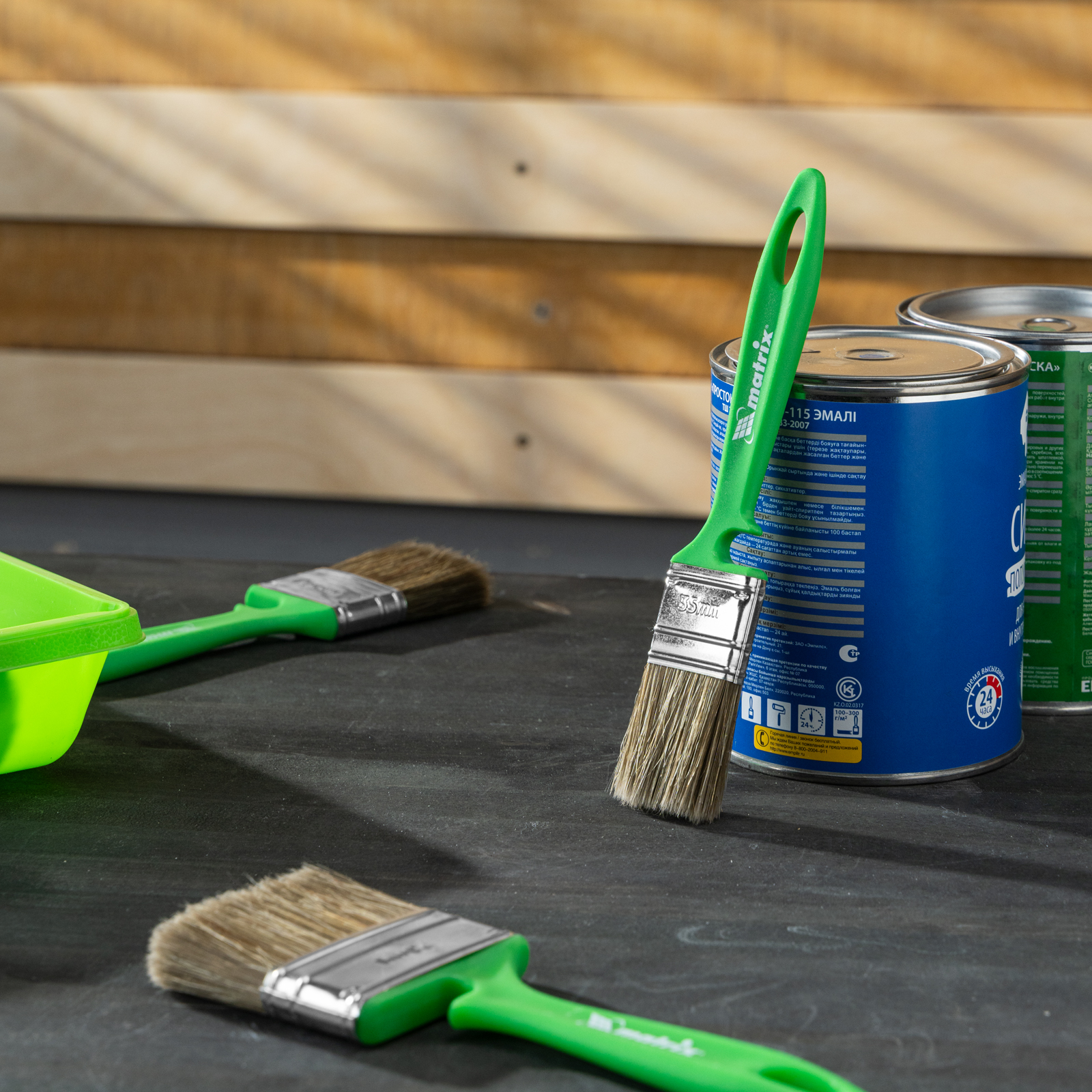- Продуманная форма рукоятки — благодаря специальному вырезу кисть можно закрепить на банке, ведре или ванночке.