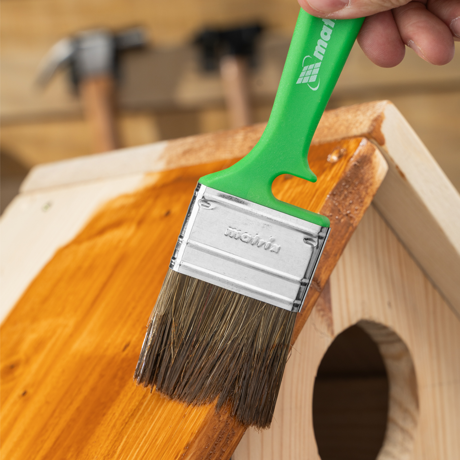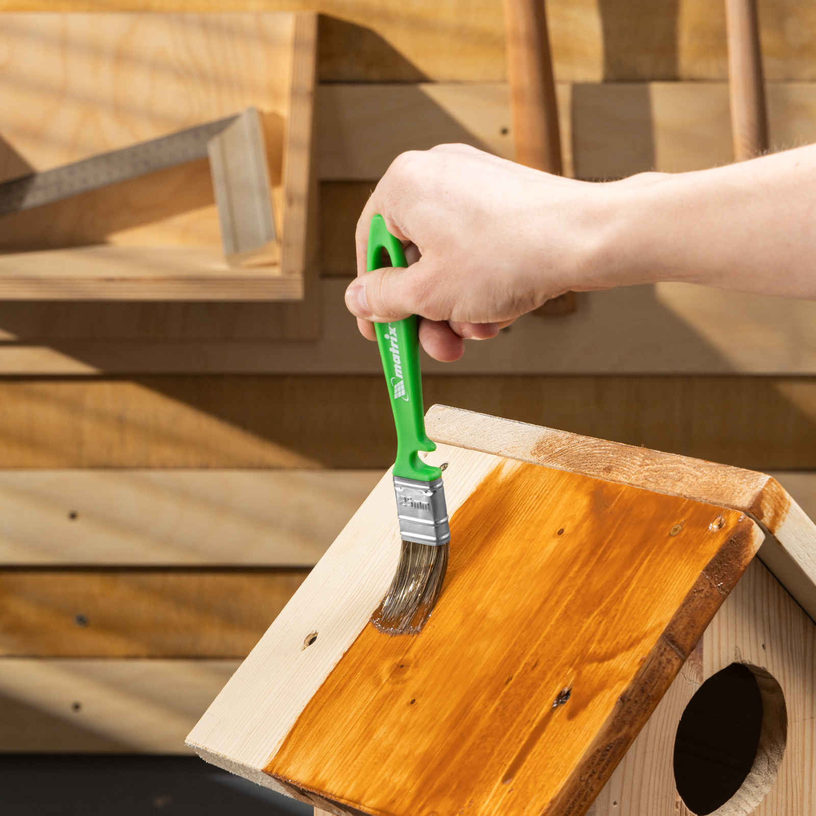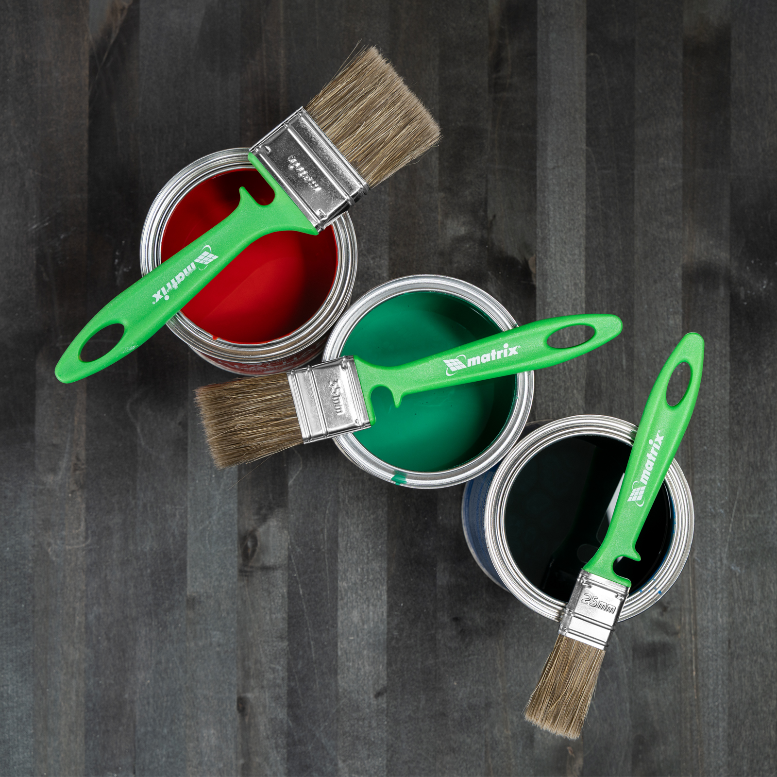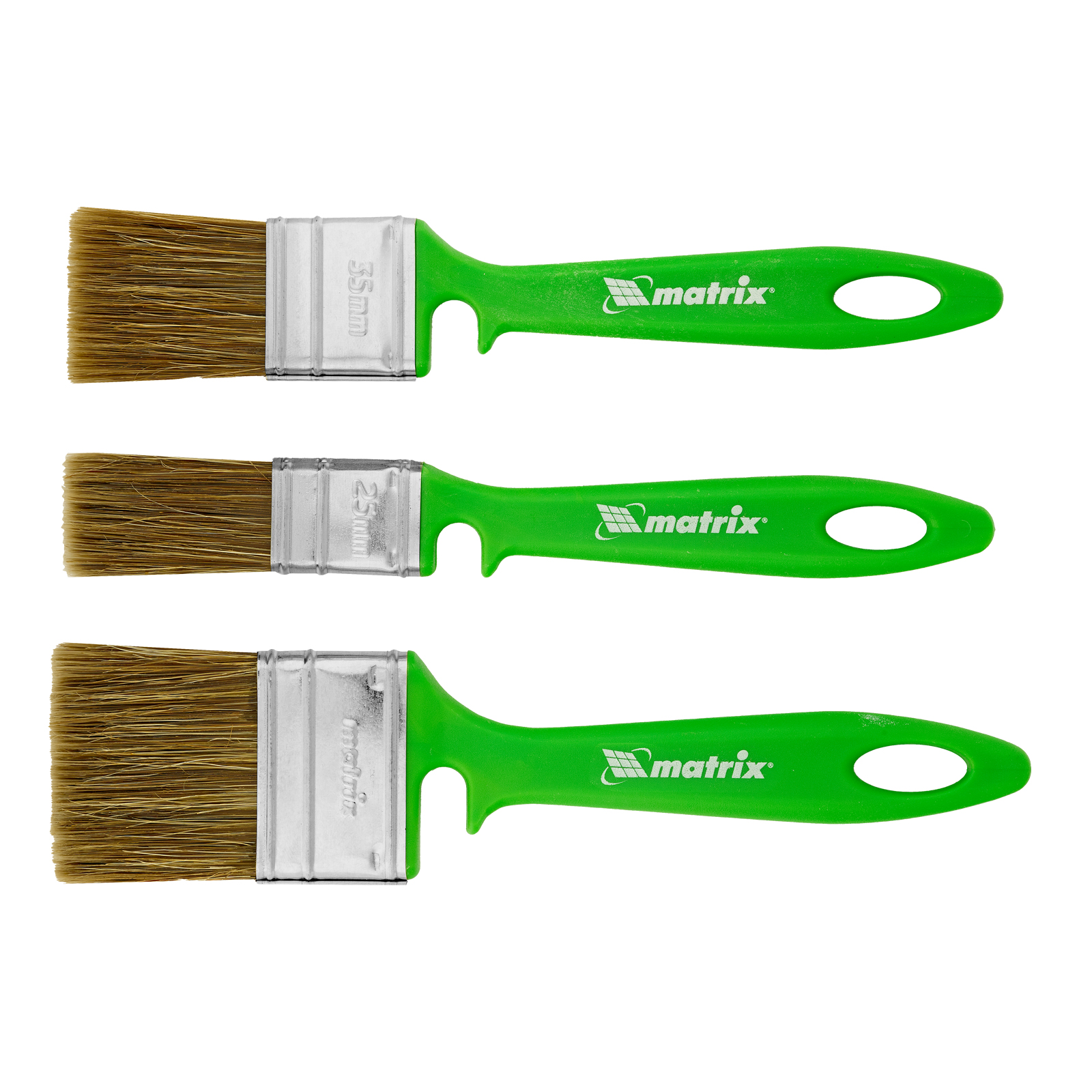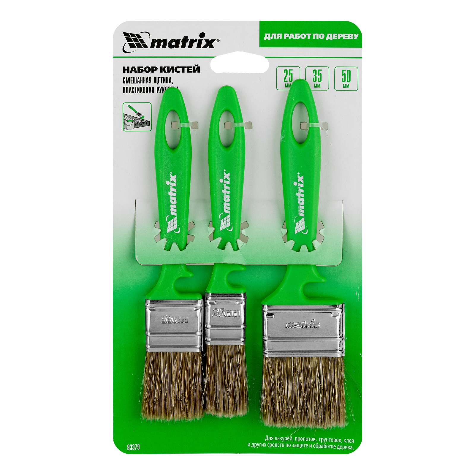 Набор Matrix Color Line «РАБОТЫ ПО ДЕРЕВУ» 83379 включает кисти шириной 25, 35 и 50 мм, использующиеся с любыми видами пропиток, клеев, грунтовок и других деревообрабатывающих составов. Комбинированная щетина расщеплена на кончиках и содержит натуральные волокна, поэтому кисти хорошо впитывают и отдают лакокрасочные материалы. Искусственный ворс предохраняет щетину от деформации при использовании водных составов. Высокая плотность щетины обеспечивает хорошую продуктивность работ.