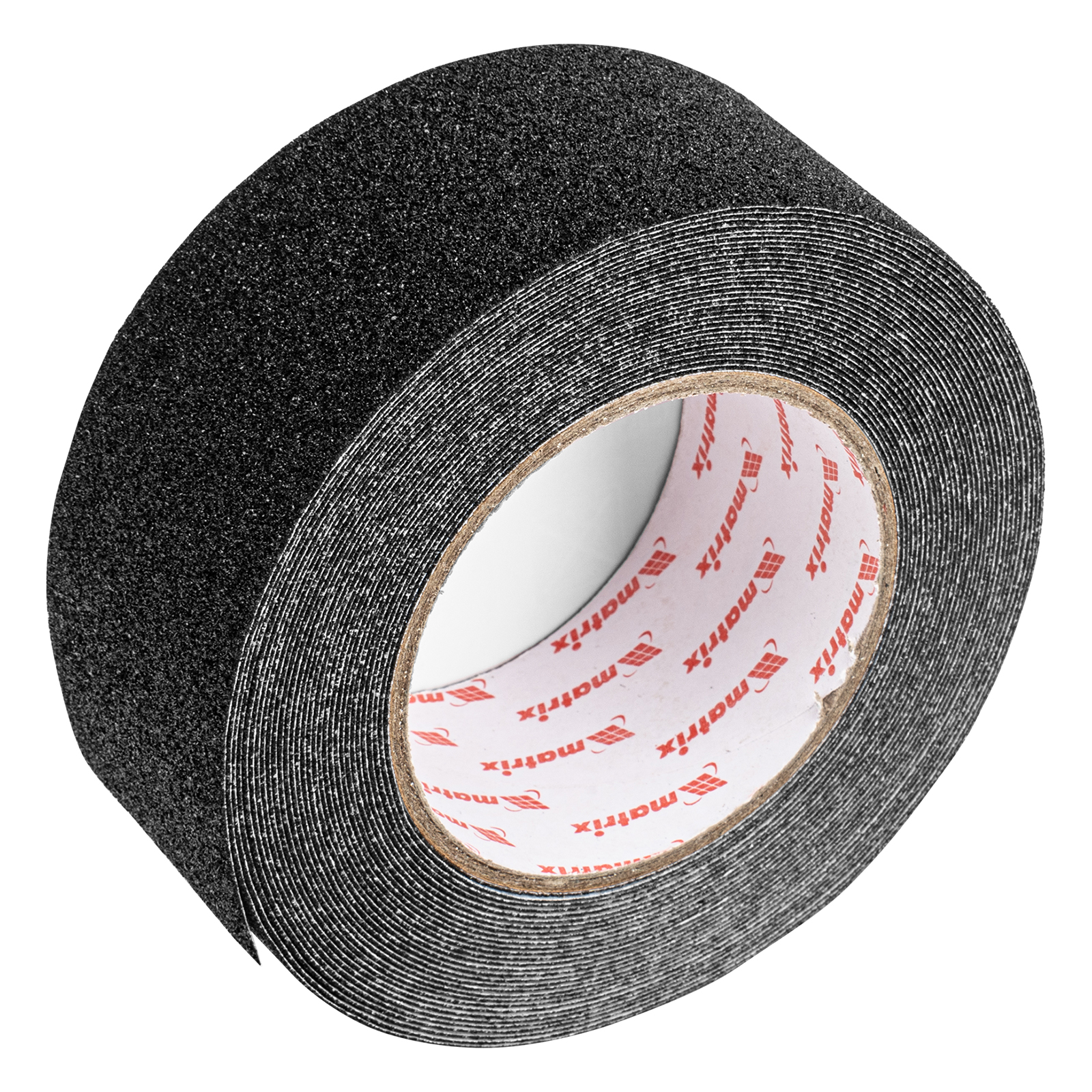 Клейкая противоскользящая лента Matrix 88708 черного цвета, шириной 50 мм и длиной 10 м, позволяет снизить риск получения травм на лестницах, кафеле и других скользких поверхностях. Пригодится в помещениях с большой посещаемостью: общественных зданиях, многоквартирных домах, бассейнах и др. Благодаря прочному клеевому составу лента крепится на любые поверхности: ламинат, кафель и т. д. Ленту следует монтировать при температуре выше +12 ℃ на предварительно очищенную сухую поверхность.
