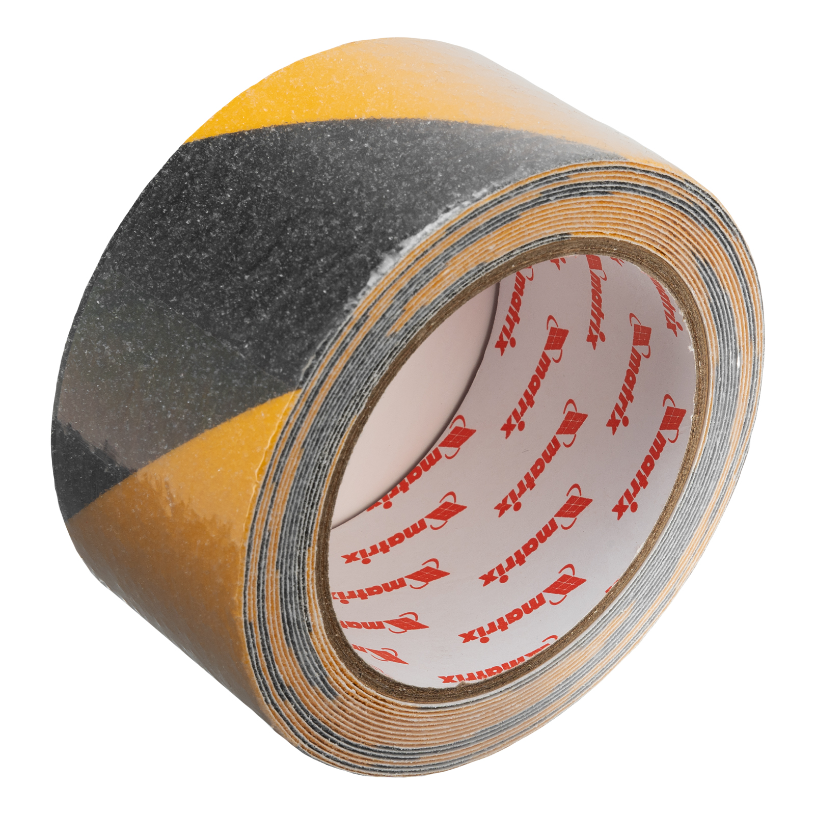 Клейкая противоскользящая лента Matrix 88718 черно-желтого цвета, размером 50 мм х 5 м, предназначена для предотвращения несчастных случаев на лестницах, кафельном полу и других скользких поверхностях. Позволяет обезопасить посетителей людных мест: общественного здания, многоквартирного дома, производства, магазина. Ленту следует наклеивать на очищенные сухие поверхности при температуре выше +12 °C.