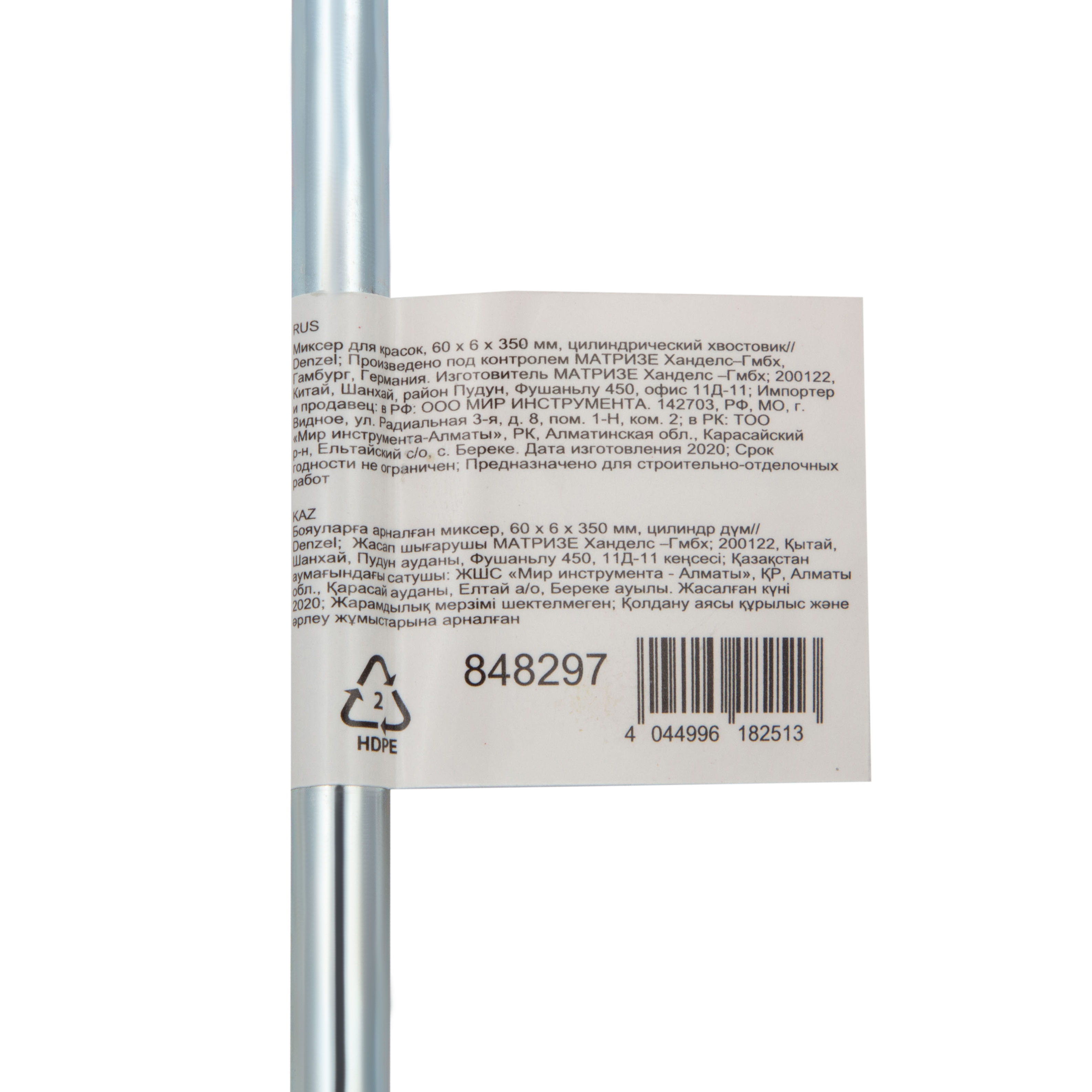 Миксер для красок Denzel 848297 длиной 350 мм, с диаметром пропеллера 60 мм и диаметром цилиндрического хвостовика 6 мм, применяется для размешивания легких жидких смесей — красок, лаков и глазури. Противоположно направленные лопасти насадки-венчика равномерно смешивают краски в разных плоскостях, позволяя получить однородный раствор. Венчик для строительного миксера используется во время проведения отделочных работ.