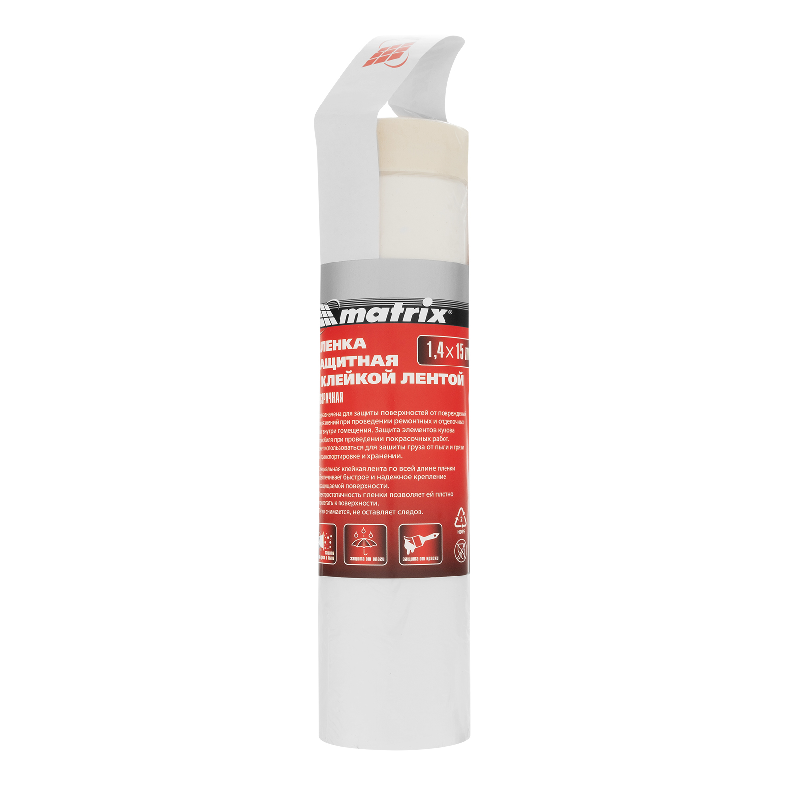 Защитная пленка с клеящей лентой Matrix 88751 размером 1400 мм х 15 м предотвращает загрязнение мебели, дверей, стен во время ремонта, также используется при покраске кузова автомобиля и перевозке грузов. Благодаря клейкой ленте надежно фиксируется на поверхностях, после использования легко снимается и не оставляет следов.