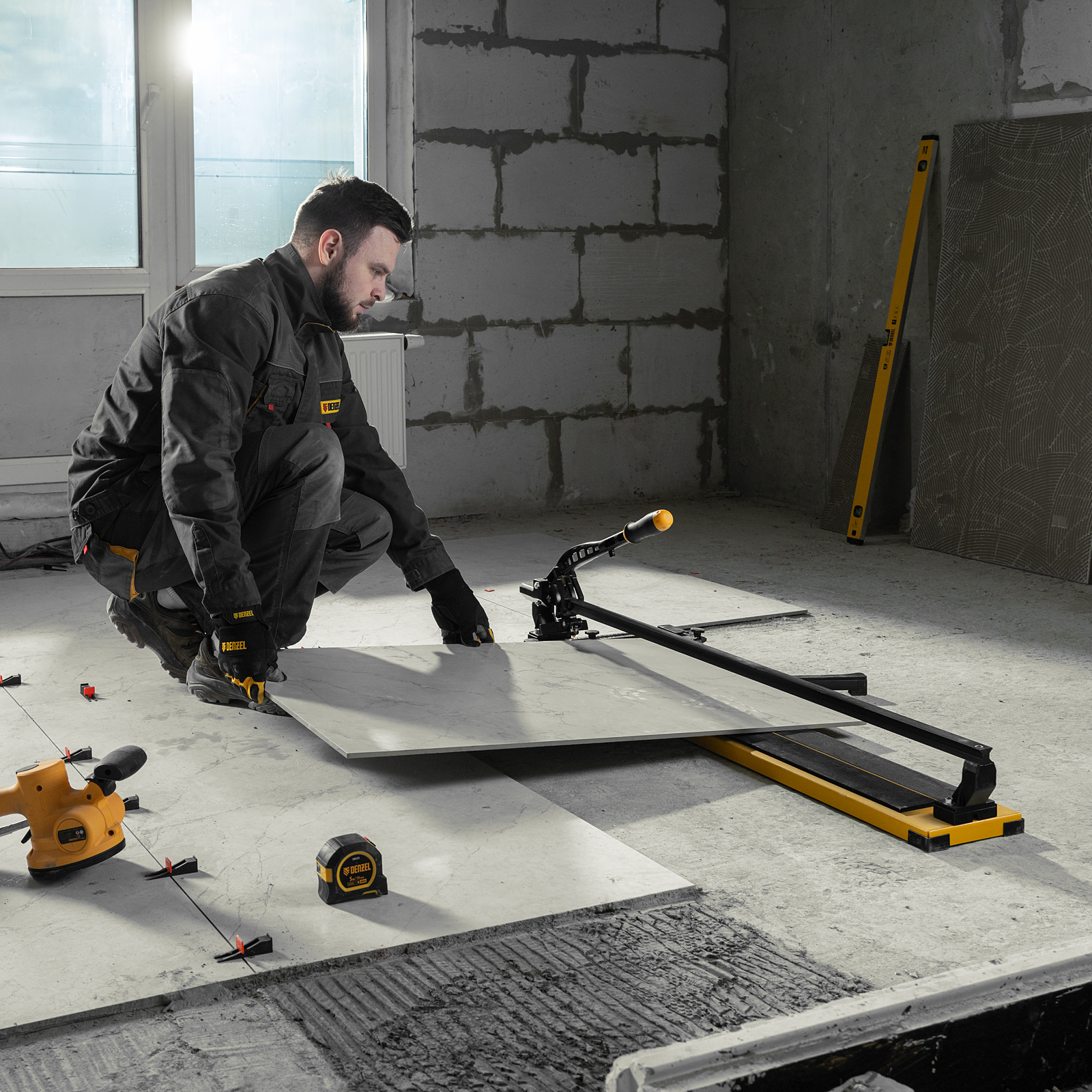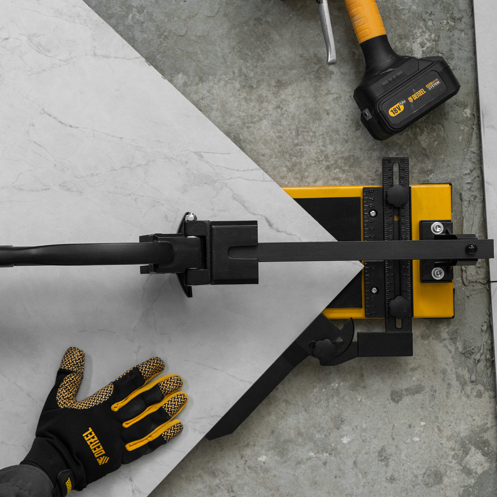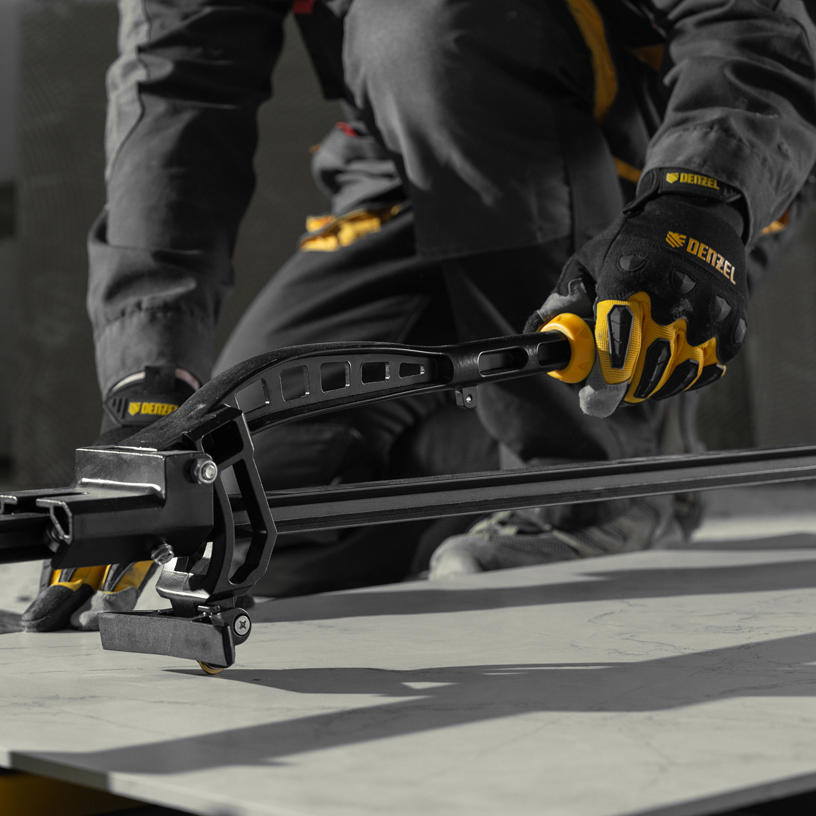 - Удобная работа — благодаря противоскользящим накладкам плиткорез не смещается даже на гладких поверхностях.