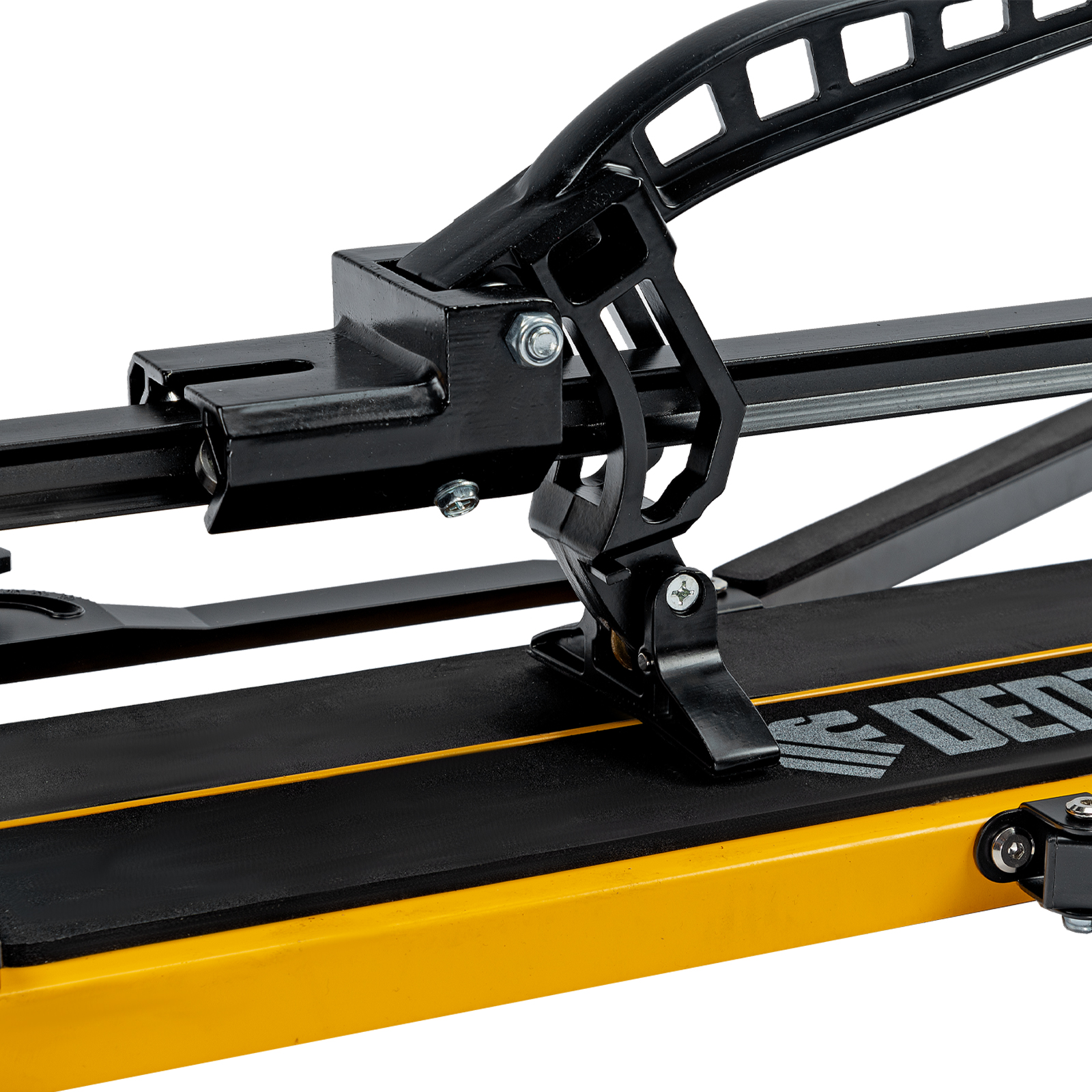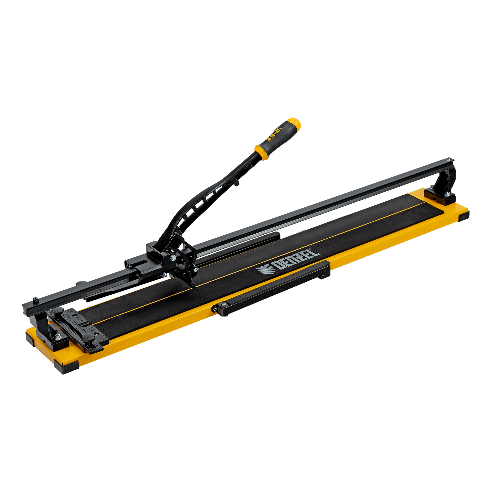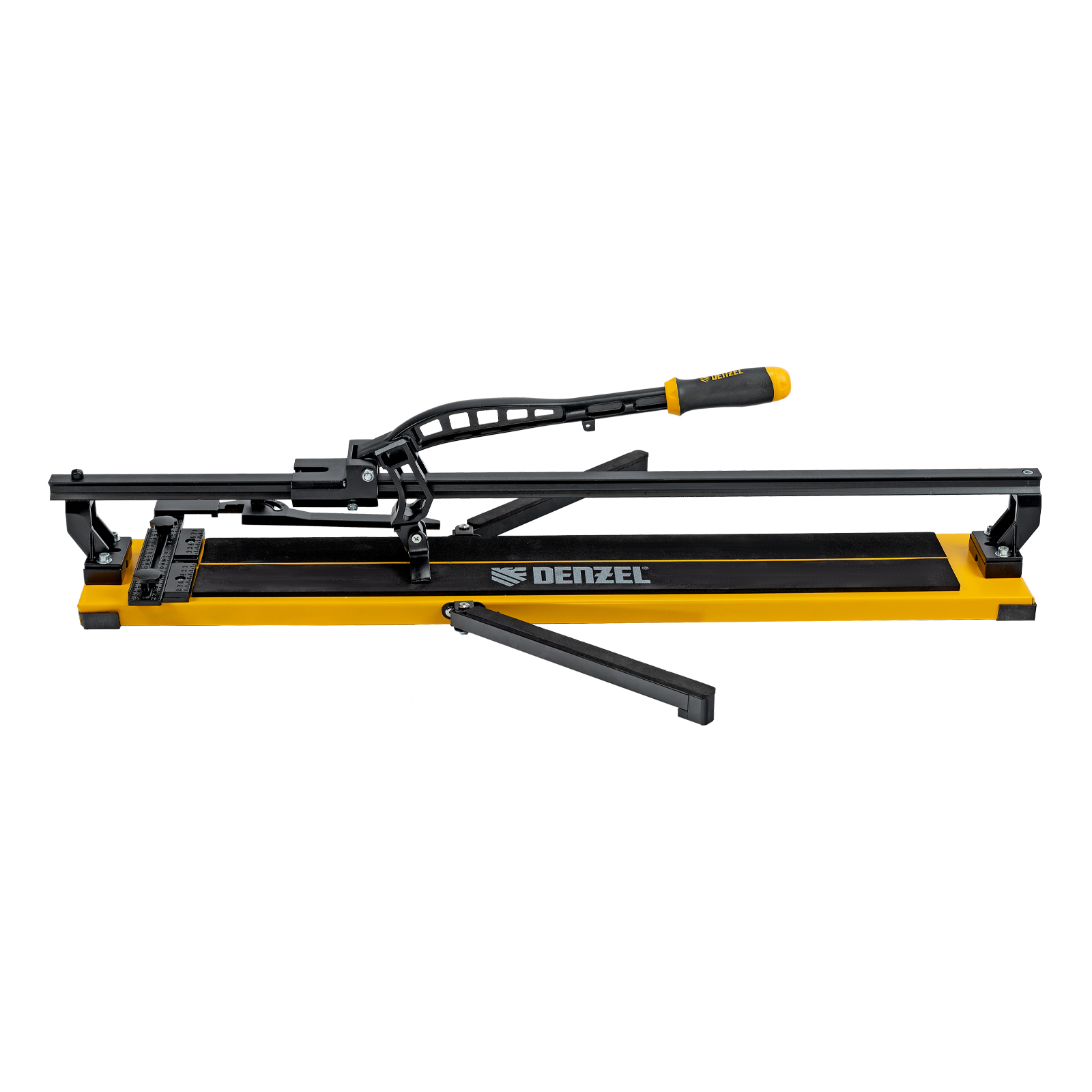 Ручной плиткорез Denzel 877018 с рельсовой направляющей и стальной станиной, с кареткой на подшипниках и усиленной рукояткой-пеналом, предназначен для прямой и диагональной резки керамической плитки и керамогранита длиной до 1000 мм и толщиной до 16 мм. Раздвижные упоры упрощают работу с плиткой большого размера. Инструмент используется для проведения отделочных работ.