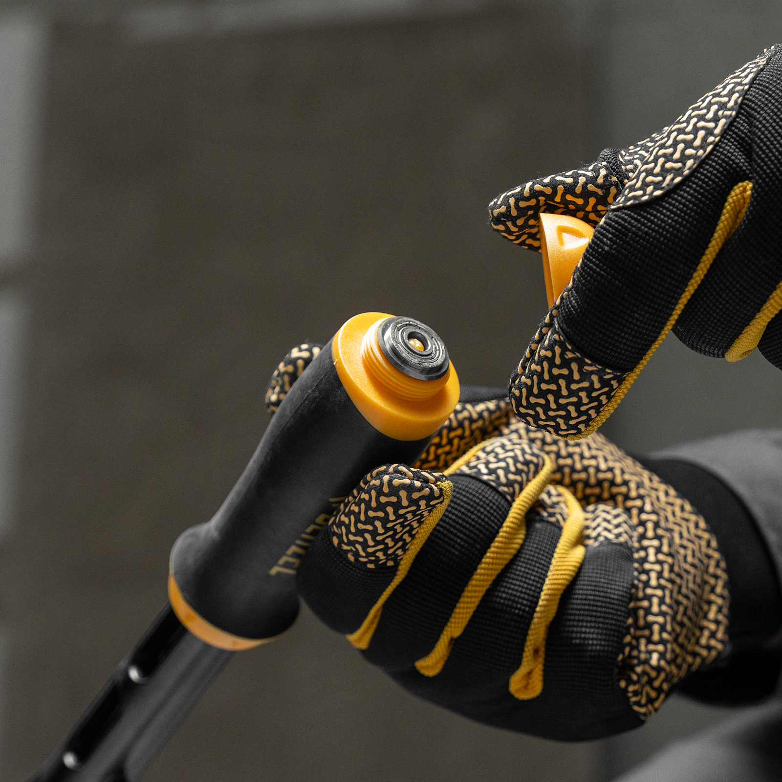 - Удобная работа — благодаря противоскользящим накладкам плиткорез не смещается даже на гладких поверхностях.