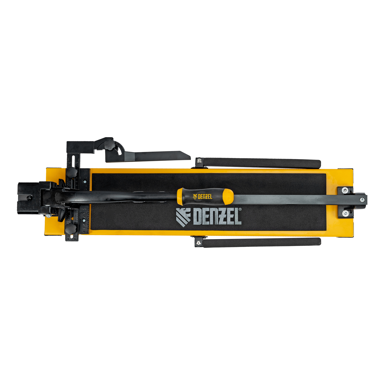 Ручной плиткорез Denzel 877014 с рельсовой направляющей и стальной станиной, с кареткой на подшипниках и усиленной рукояткой-пеналом, предназначен для прямой и диагональной резки керамической плитки и керамогранита длиной до 600 мм и толщиной до 16 мм. Раздвижные упоры упрощают работу с плиткой большого размера. Инструмент используется для проведения отделочных работ.