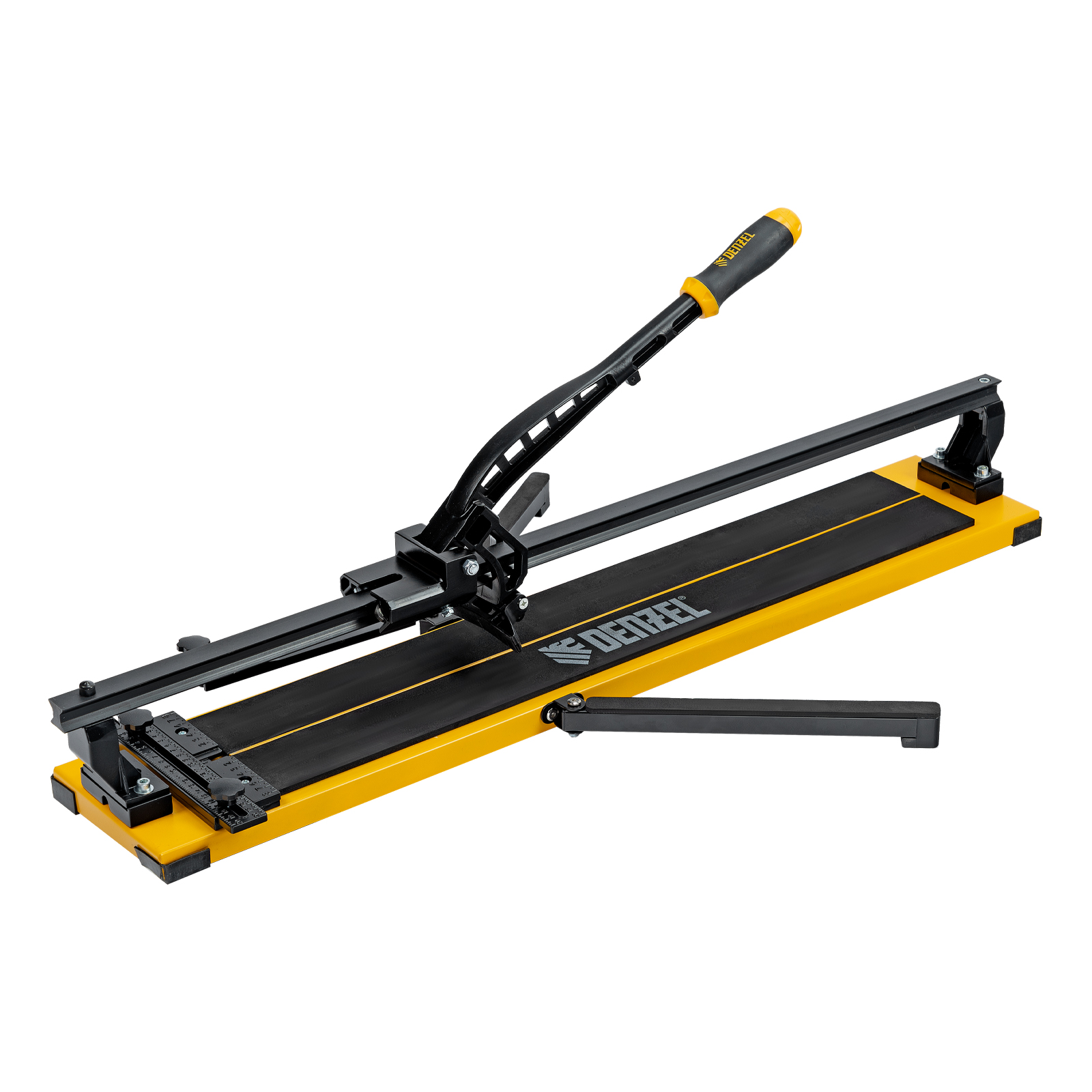 Ручной плиткорез Denzel 877016 с рельсовой направляющей и стальной станиной, с кареткой на подшипниках и усиленной рукояткой-пеналом, предназначен для прямой и диагональной резки керамической плитки и керамогранита длиной до 800 мм и толщиной до 16 мм. Раздвижные упоры упрощают работу с плиткой большого размера. Инструмент используется для проведения отделочных работ.
