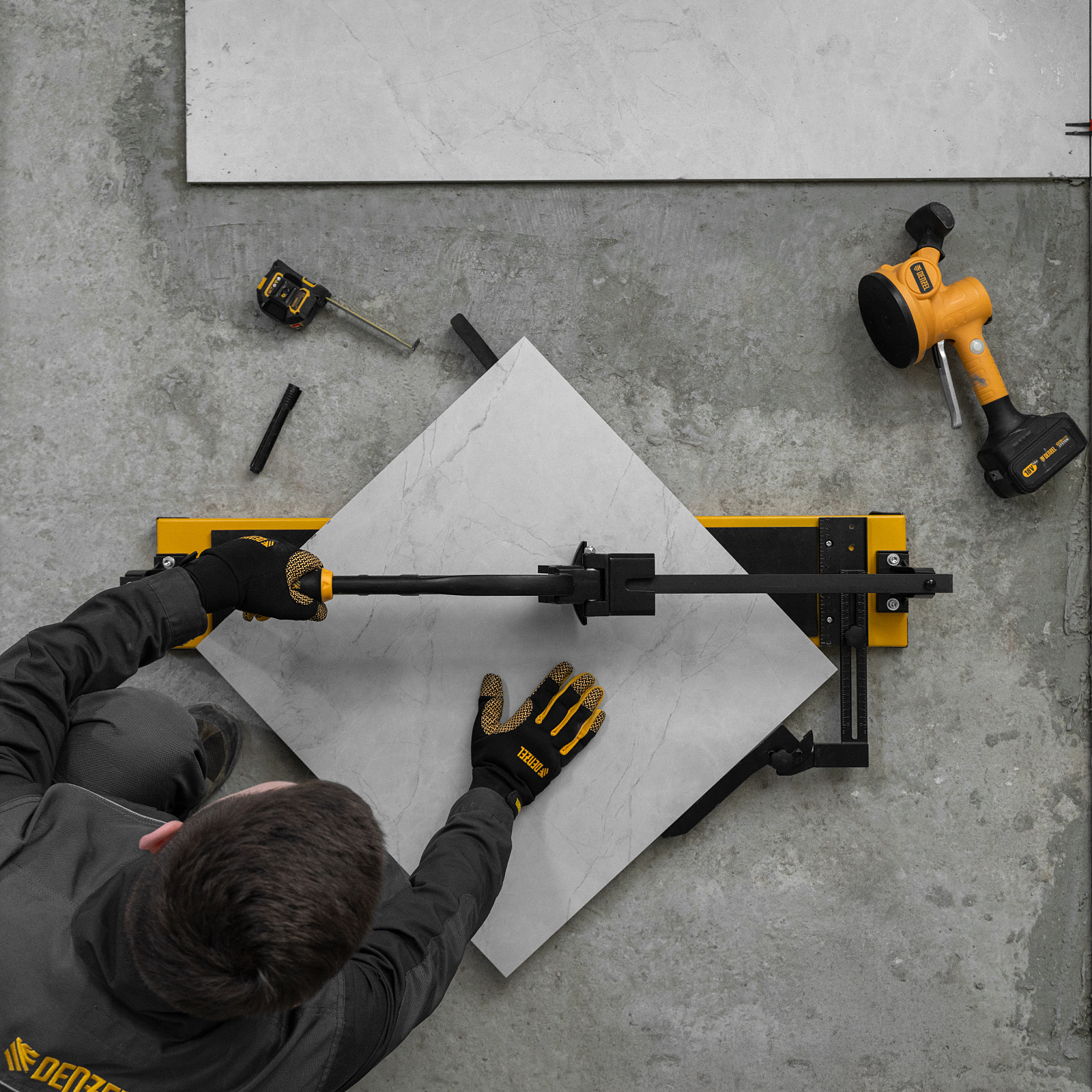 - Эргономичность — плитколом с магнитным держателем не создает помех во время резки.