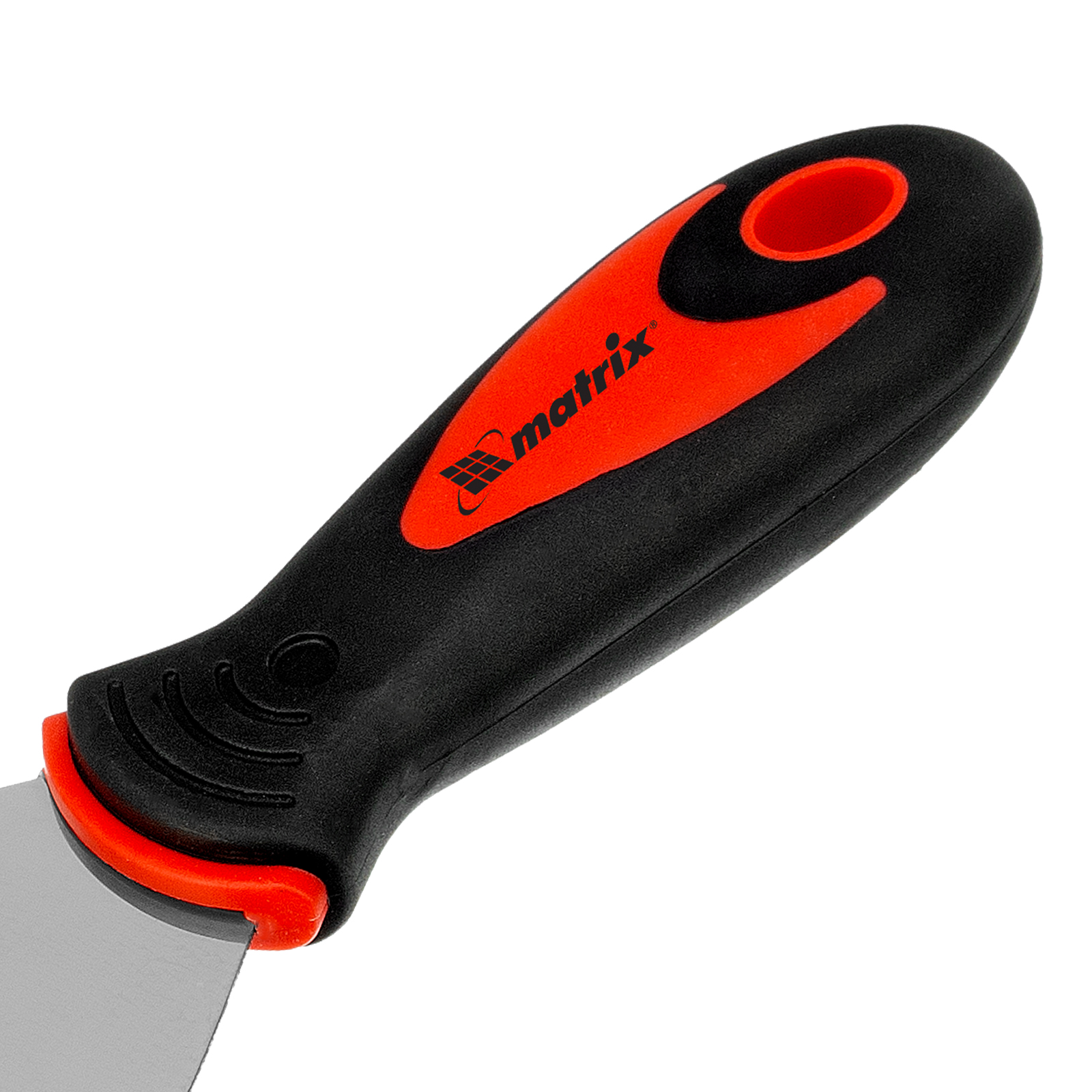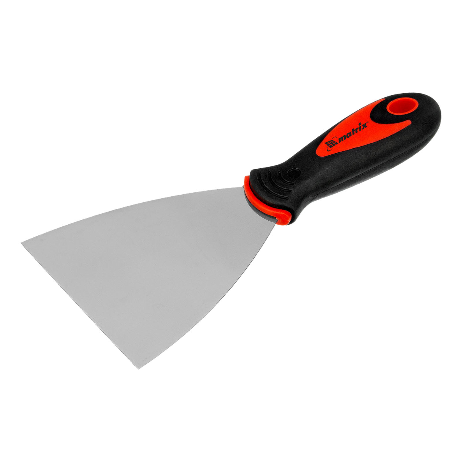 Шпательная лопатка из нержавеющей стали Matrix 85510 шириной 100 мм, с двухкомпонентной рукояткой, предназначена для нанесения и выравнивания строительных смесей, шпаклевания швов, заполнения трещин, удаления старых обоев. За счет компактных размеров инструмент подходит для корректировки мелких трещин и неровностей.