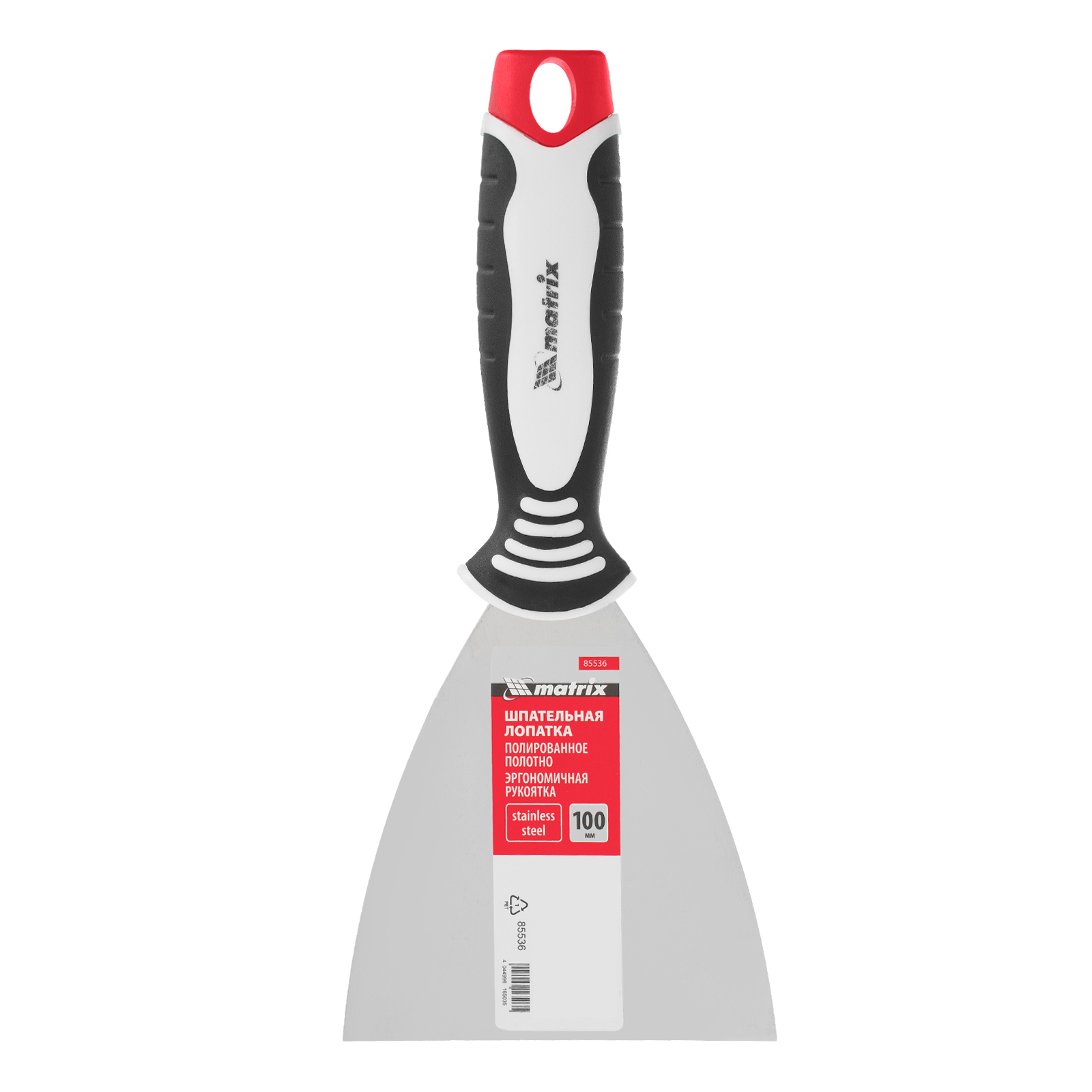Шпательная лопатка Matrix 85536 из нержавеющей стали, с полотном шириной 100 мм и 3-компонентной ручкой, подходит для бытового и профессионального применения. Инструмент позволяет замешивать, наносить и разравнивать штукатурку и другие строительные растворы, заполнять швы, заделывать трещины и выполнять иные отделочные работы.