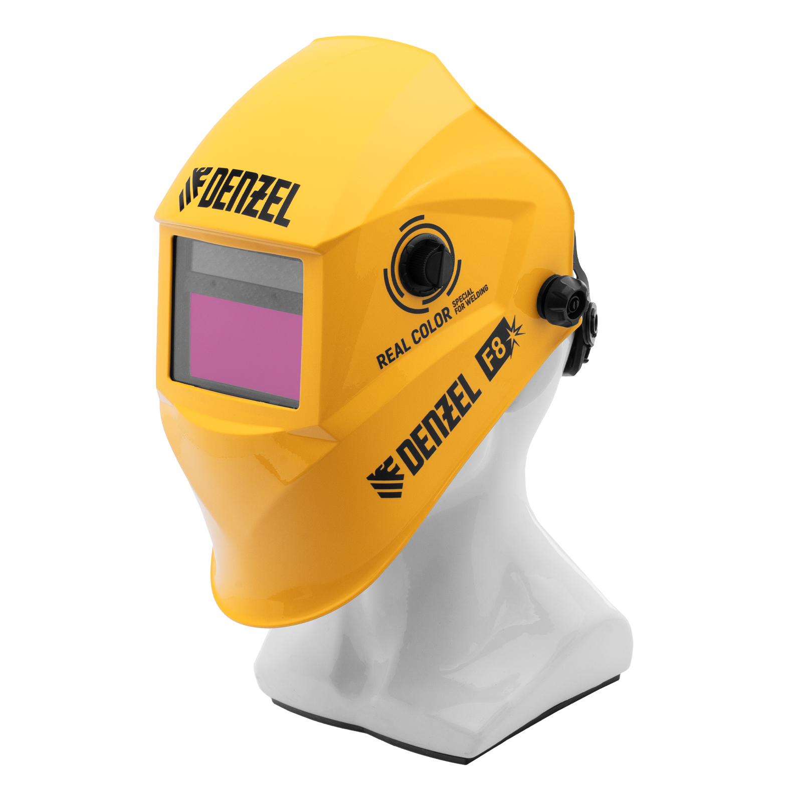 Защитный лицевой щиток (маска сварщика) Denzel F8 89717 со смотровым окном размером 100 x 50 мм и функцией затемнения DIN 4/5-8/9-14 используется во время проведения сварочных работ. Надежно защищает глаза и лицо пользователя от искр, брызг расплавленного металла, а также от инфракрасного и ультрафиолетового излучения. Корректную работу светофильтра обеспечивают два фотодатчика. Щиток подходит для проведения сварочных работ в режимах MMA, MIG/MAG, TIG, а также для выполнения плазменно-дуговой сварки, плазменной и дуговой резки.