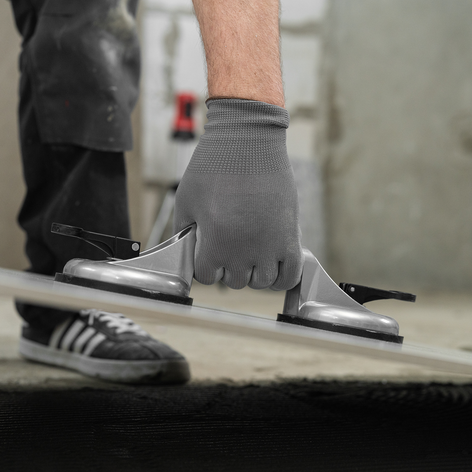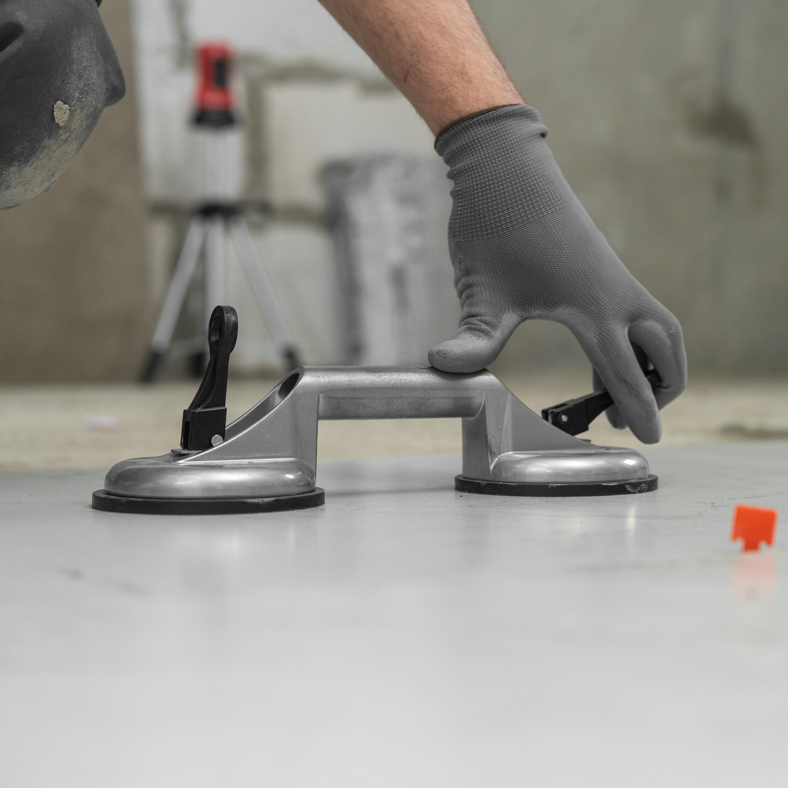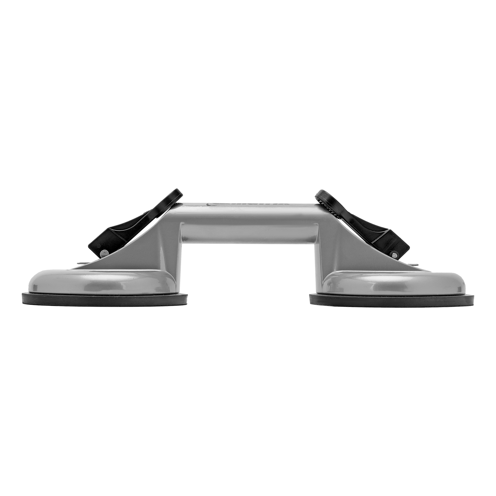 Алюминиевый двойной стеклодомкрат Matrix 875205 позволяет поднимать, переносить и устанавливать стекла, зеркала, плитку, листовой металл и другие гладкие материалы. Имеет две вакуумные присоски, которые бережно и надежно фиксируются на поверхности при помощи зажимов. Стеклодомкрат позволяет длительное время удерживать груз весом до 80 кг. Будет полезен во время строительства, ремонта, а также пригодится в быту.