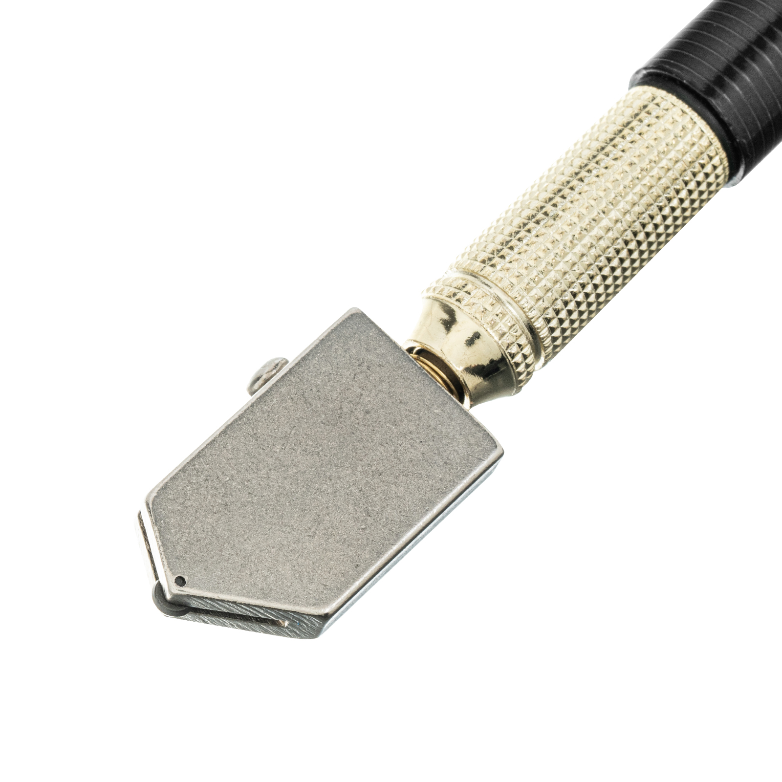 - Удобное использование — широкая головка специальной формы позволяет располагать стеклорез под разными углами к поверхности.