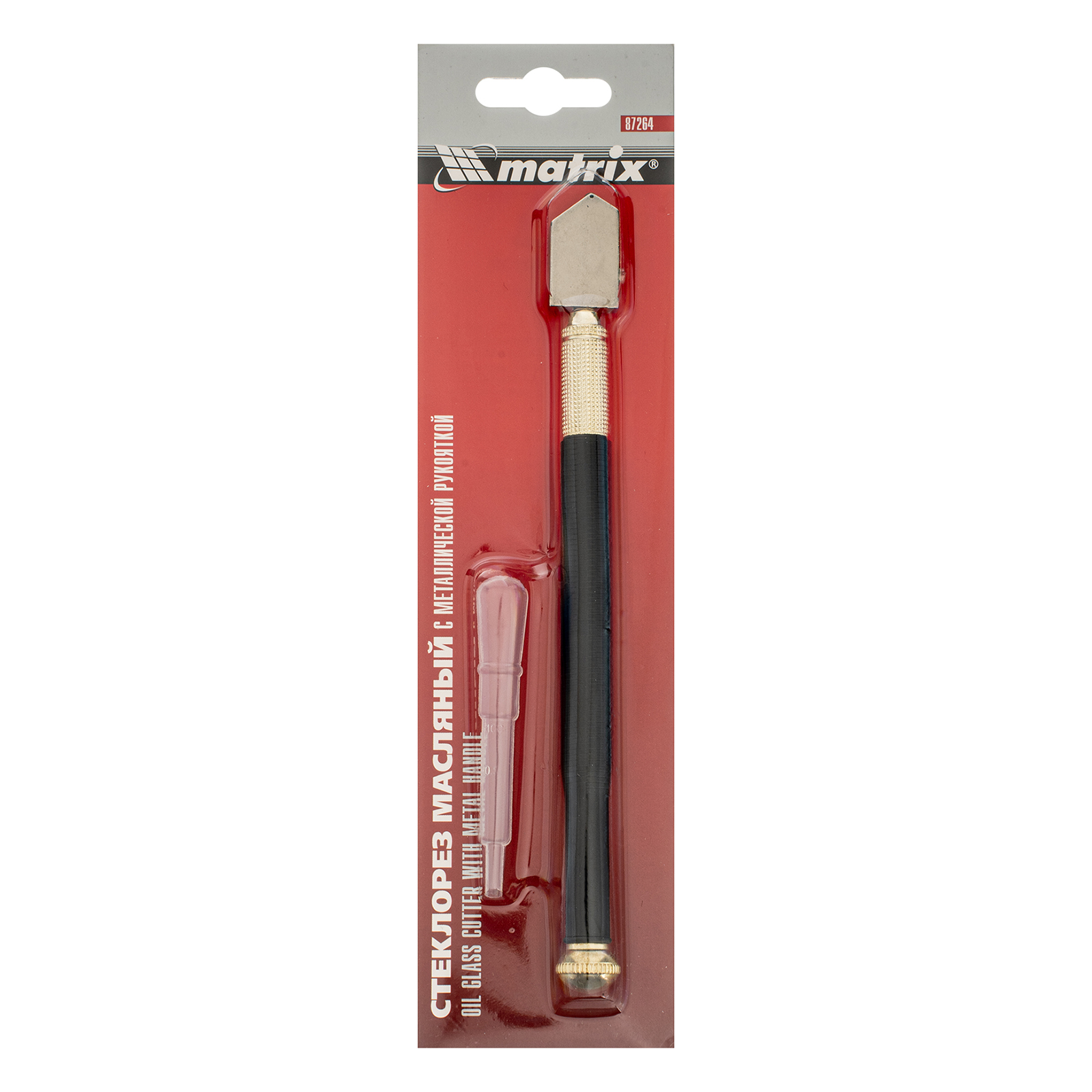 Масляный однороликовый стеклорез Матрикс 87264 с металлической рукояткой используется для выполнения профессиональных стекольных работ, пригодится также и в быту. Режет стекло толщиной до 10 мм. Рукоятка представляет собой резервуар для масла, керосина или другой смазочной жидкости. Благодаря механизму автоматической подачи масла стеклорез обладает повышенной производительностью.