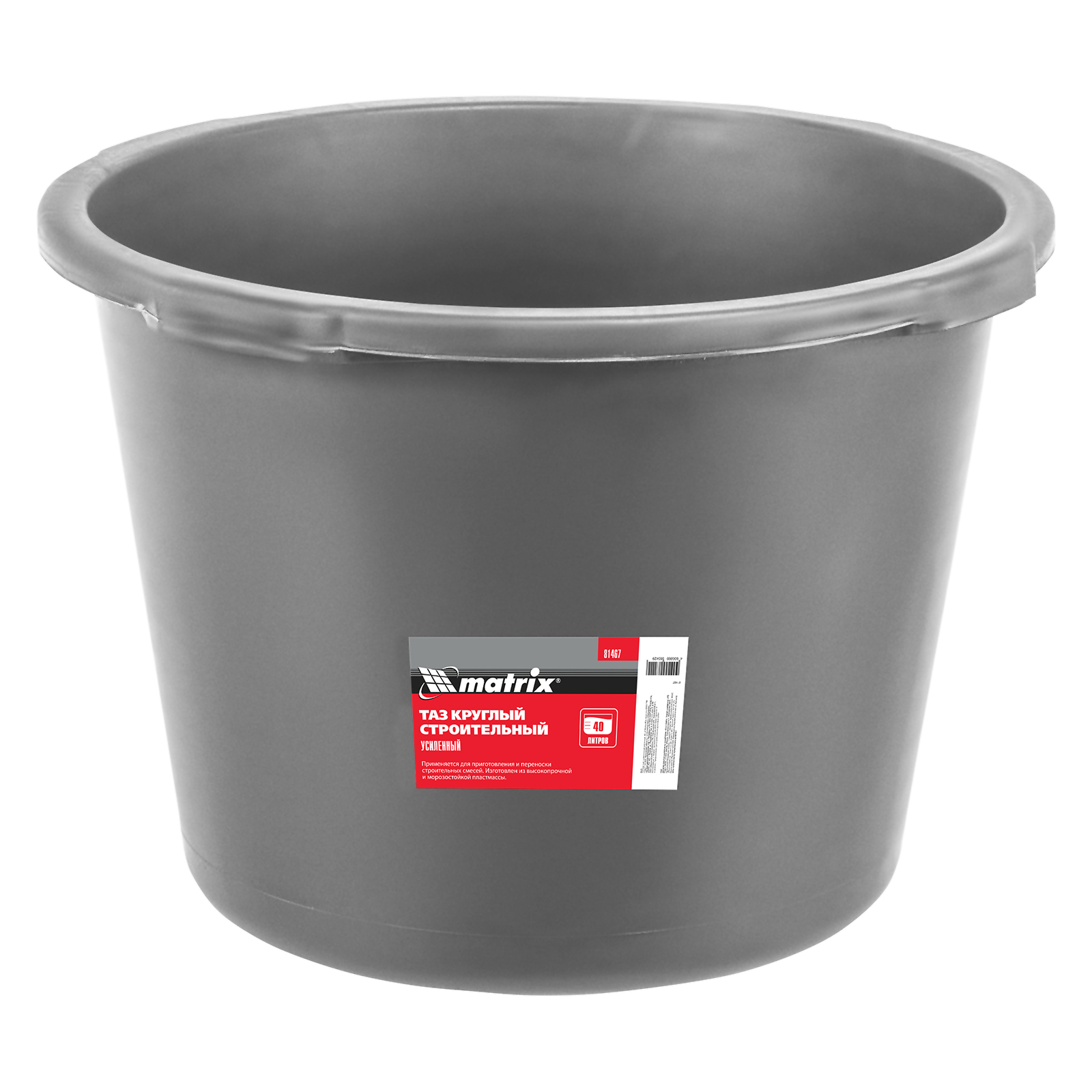 Таз круглый строительный усиленный Matrix 81467 объемом 40 л предназначен для замешивания строительных растворов любого типа при проведении ремонтно-отделочных работ. Благодаря диаметру 478 мм для приготовления смеси удобно использовать различный отделочный инструмент (шпатели, кисти). Пригодится такой таз и в быту: он удобен для хранения сыпучих материалов, сбора и утилизации мусора, проведения влажной уборки.
