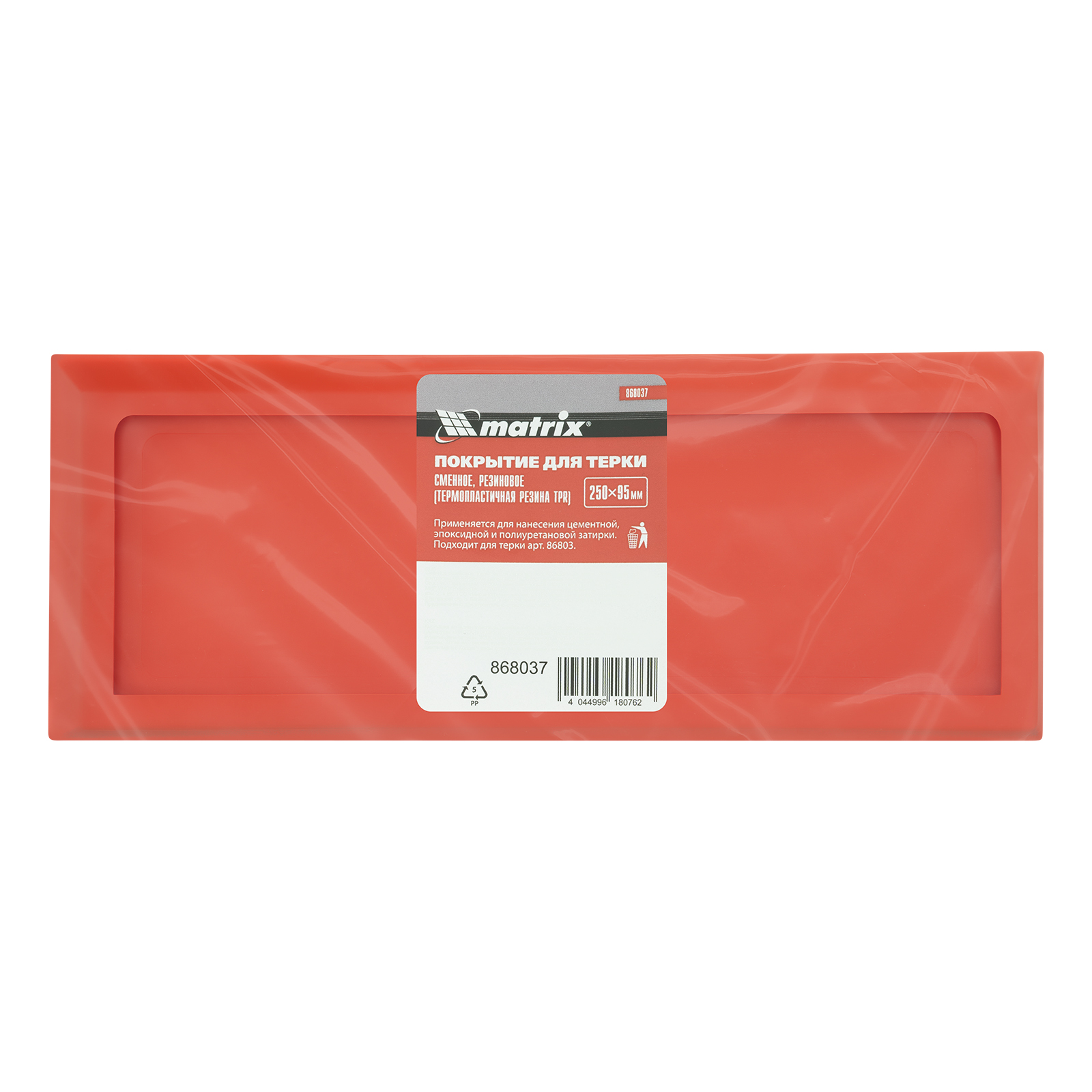 Сменное резиновое покрытие Matrix 868037 размером 250 x 95 мм устанавливается на терку Matrix 86803. Пригодится для заполнения швов цементными или эпоксидными затирками при укладке плитки, подойдет для выполнения большого объема работ.