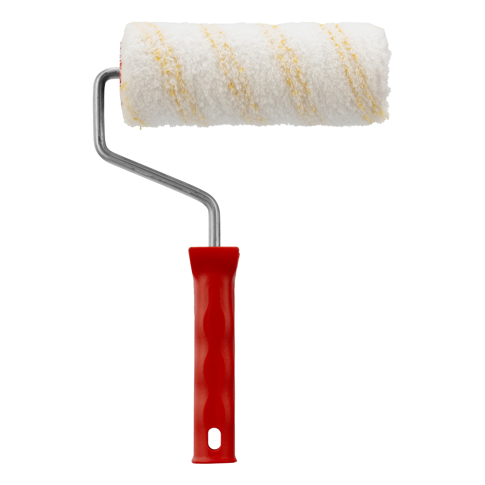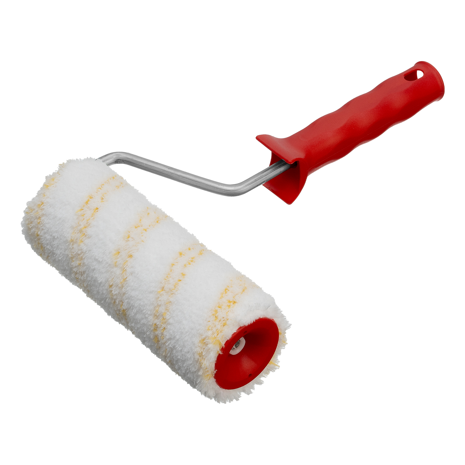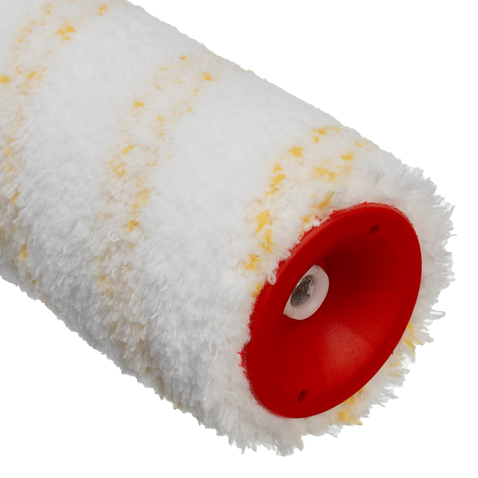 - Высокое качество окрашивания — бесшовная шубка с остриженными краями не оставляет следов, хорошо впитывает и переносит краску, а благодаря свободно вращающемуся ролику валик максимально отдает ЛКМ на поверхность.