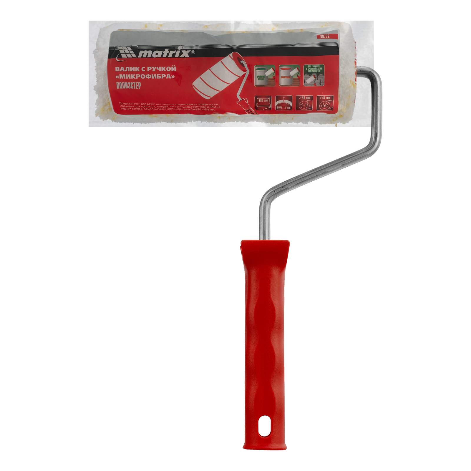 Валик Matrix «МИКРОФИБРА» 80772, 180 х 48 мм, с ворсом 12 мм из полиэстера и бюгелем 8 мм, используется для проведения подготовительных и малярных работ по дереву, стенам, потолкам. Он подходит для нанесения невязких материалов: пропиток, грунтовок, лазури, дисперсионных красок, антисептиков и др. Шубка с ворсом длиной 12 мм оптимальна для большинства поверхностей, в том числе шероховатых.