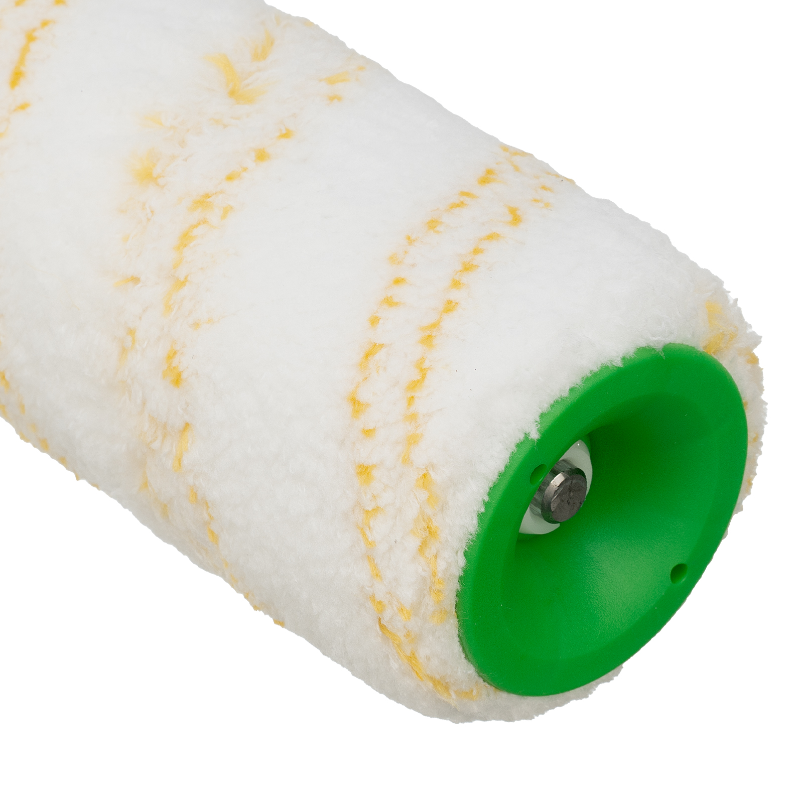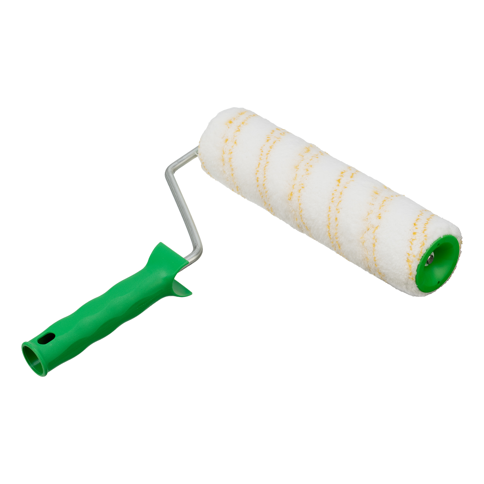 - Высокое качество окрашивания — бесшовная шубка с остриженными краями не оставляет следов, хорошо впитывает и переносит краску, а благодаря свободно вращающемуся ролику валик максимально отдает ЛКМ на поверхность.