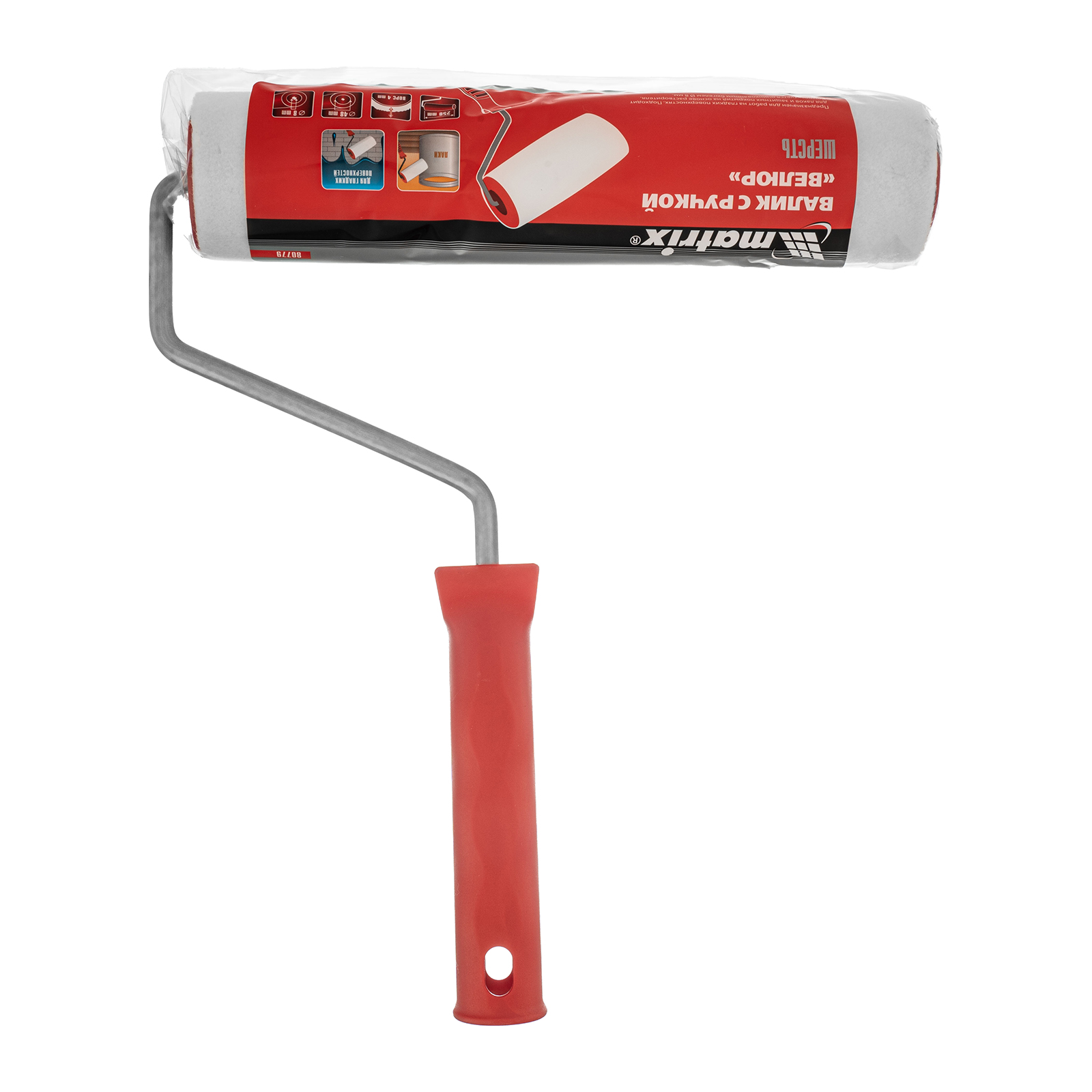 Валик Matrix «ВЕЛЮР» 80779 шириной 250 мм и диаметром 48 мм, с двухкомпонентной ручкой, бюгелем 8 мм, ворсом 4 мм из шерсти и полиакрила, позволяет наносить материал тонким слоем, поэтому оптимален для работы с лаками. Благодаря коротковорсовой шубке является идеальным помощником во время финишной отделки полов и гладкой древесины. Полиакрил в составе шубки повышает формостойкость и устойчивость валика к воздействию агрессивных веществ, что позволяет использовать его со всеми типами ЛКМ.