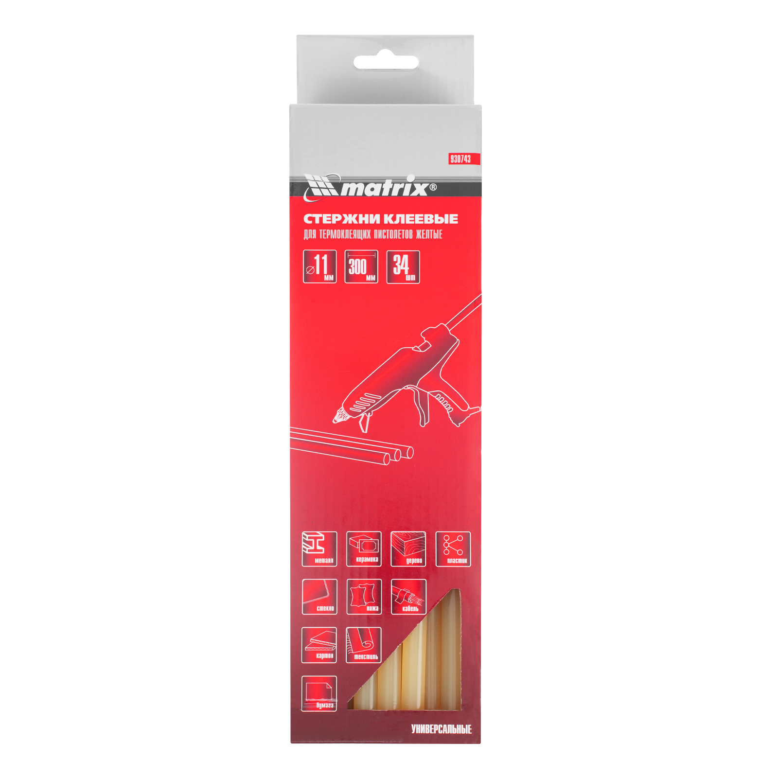 Желтые клеевые стержни Matrix 930743 длиной 300 мм, общим весом 1 кг, — расходные материалы для клеевых пистолетов калибра 11 мм. Обеспечивают надежное сцепление различных материалов: бумаги, пластика, древесины, керамики, электрических плат и т.д. Подходят также для герметизации швов и трещин.