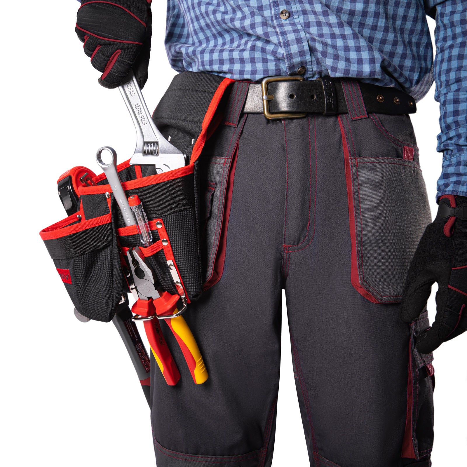 Поясной подсумок Matrix 90242 с 8 карманами и держателями для молотка и клещей используется для переноски инструментов. Крепится на ремень и позволяет иметь под рукой все необходимое, что особенно важно во время работы на высоте. Будет полезен для проведения монтажных, ремонтных и отделочных работ.