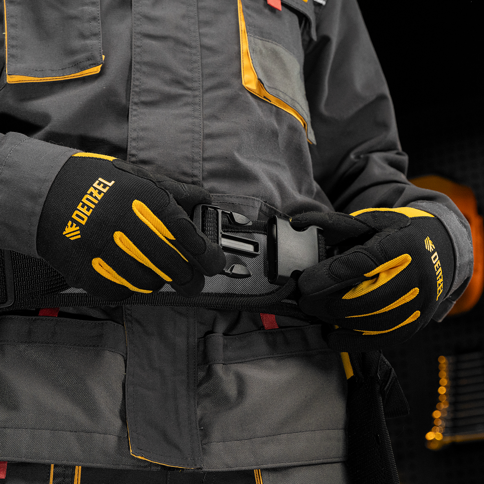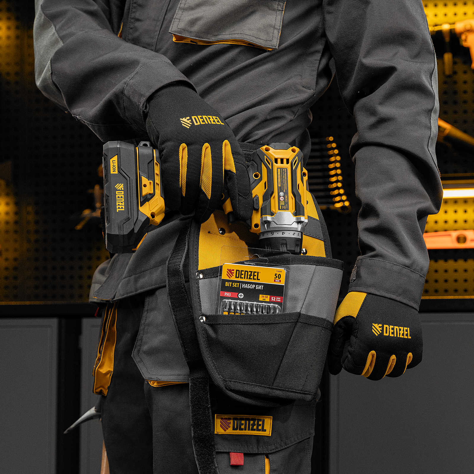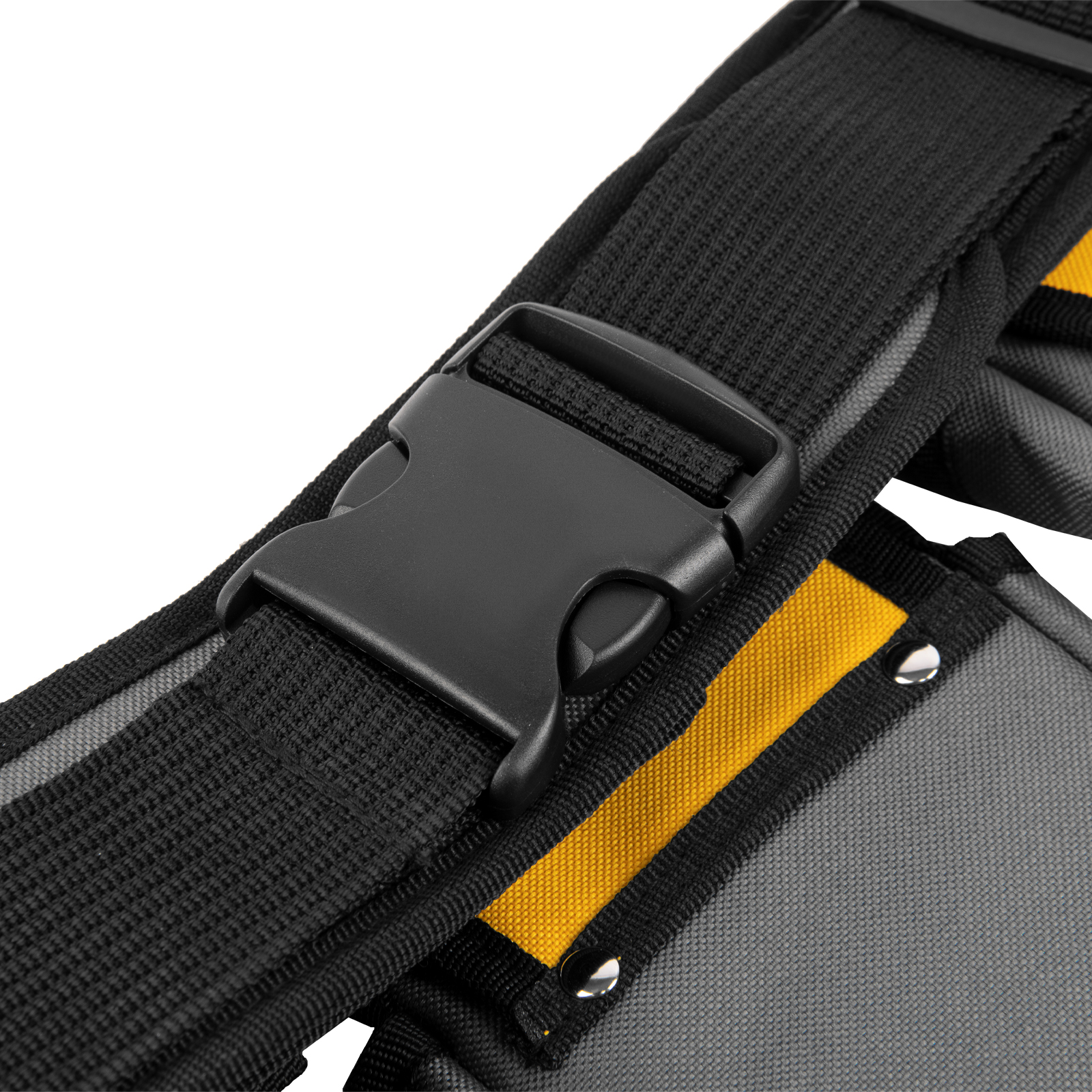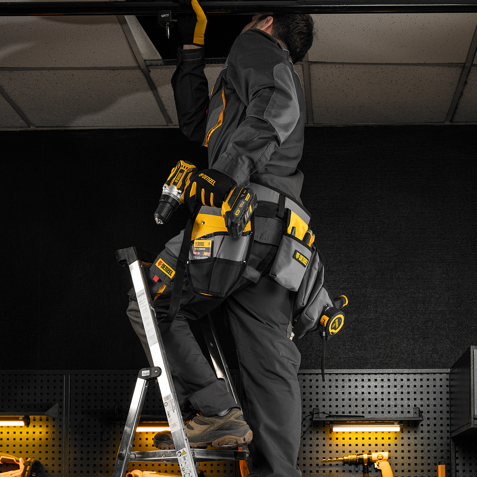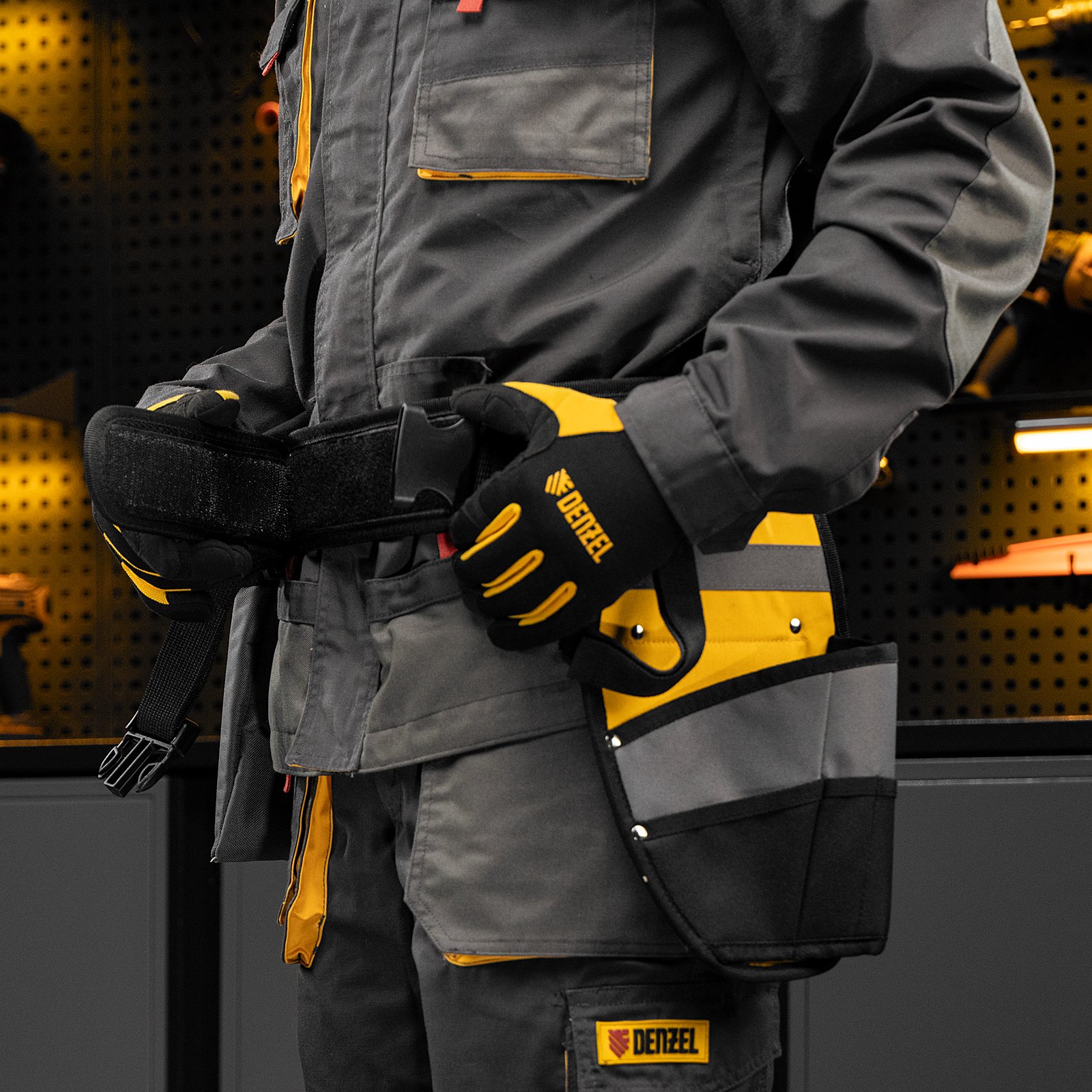 Пояс монтажника Denzel 90291 с поясными сумками и кобурой для шуруповерта позволяет иметь все необходимые инструменты под рукой во время высотных монтажных работ или решения других задач. В 14 карманах и дополнительном подсумке можно разместить инструменты, крепеж и расходники. Для шуруповерта предусмотрена специальная кобура со страховочной петлей.
