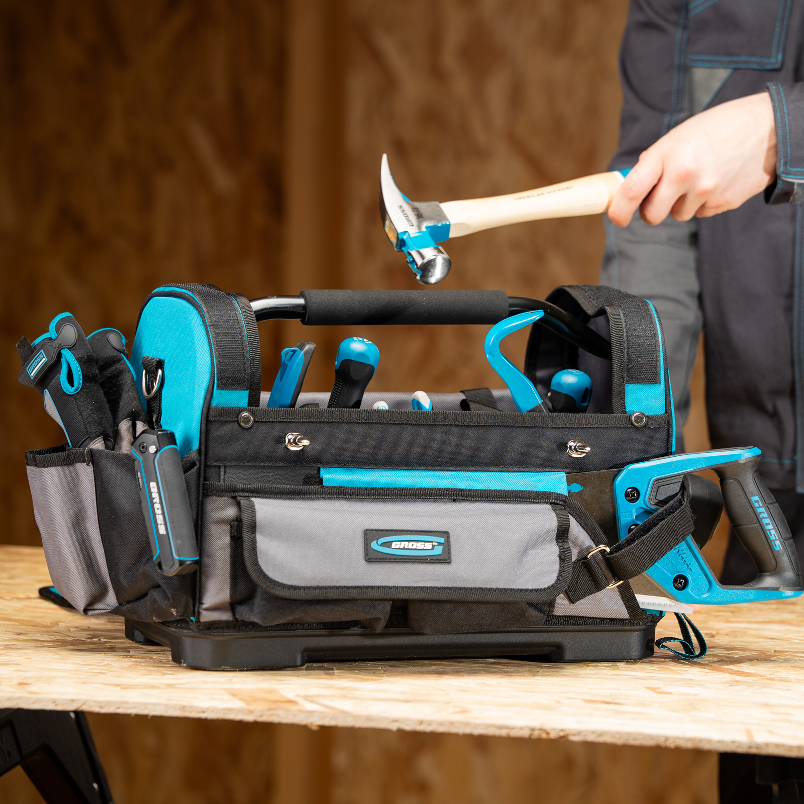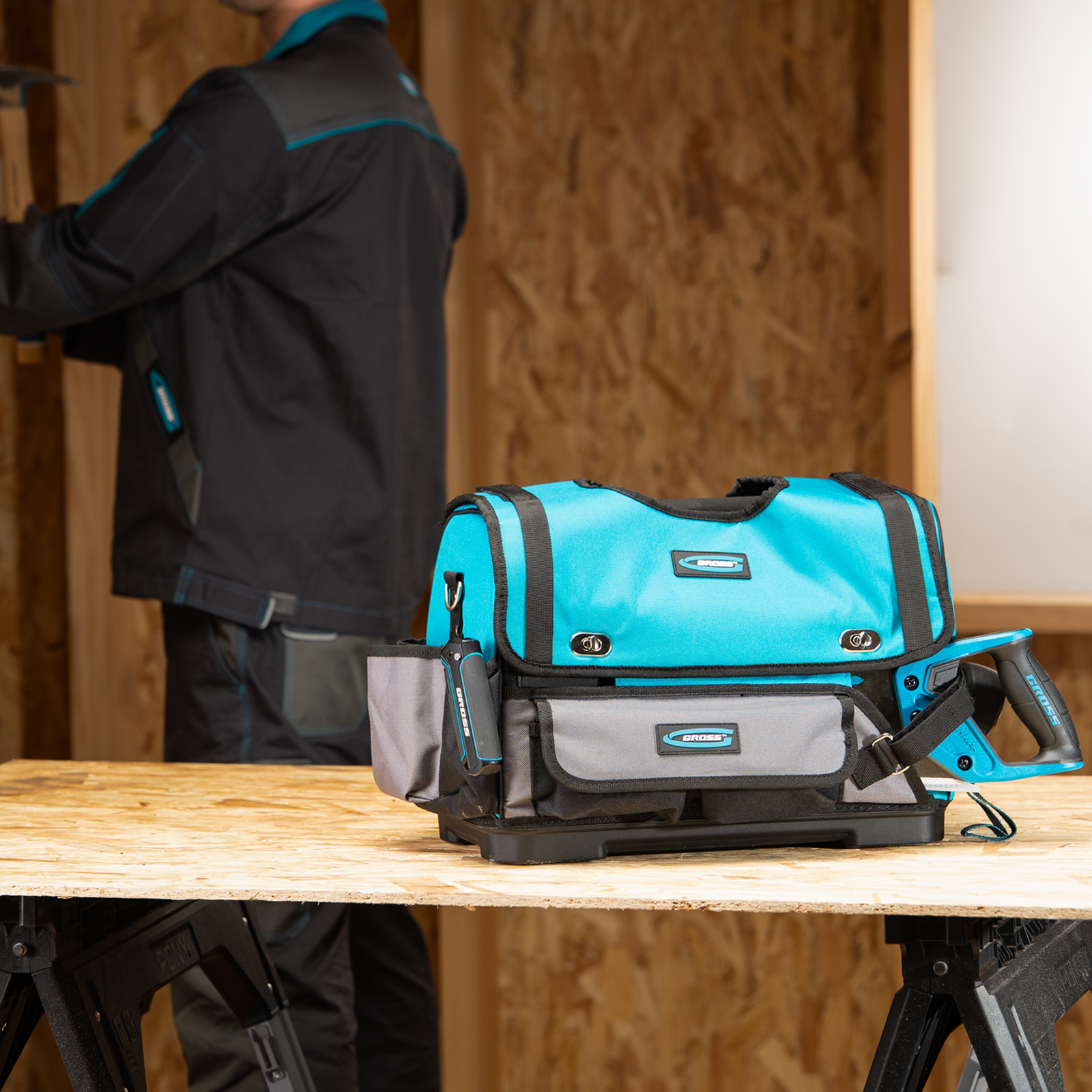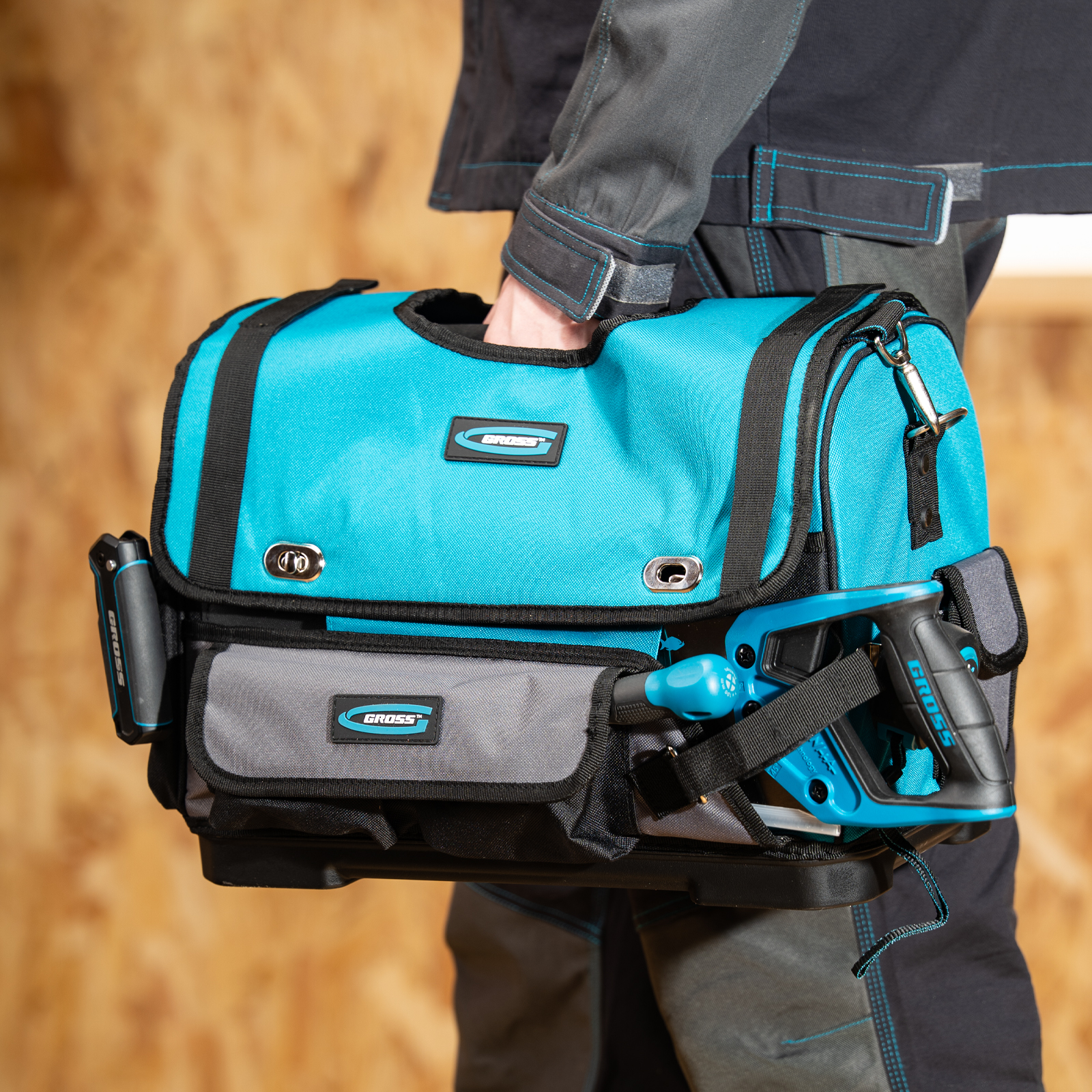 Переноска Gross 90274 размером 400 х 225 х 300 мм с пластиковым дном и наплечным ремнем используется для хранения и перемещения ручного и электроинструмента. Сумка с прочным дном и надежной ручкой выдерживает значительный вес. Пригодится дома, в гараже и поездке.