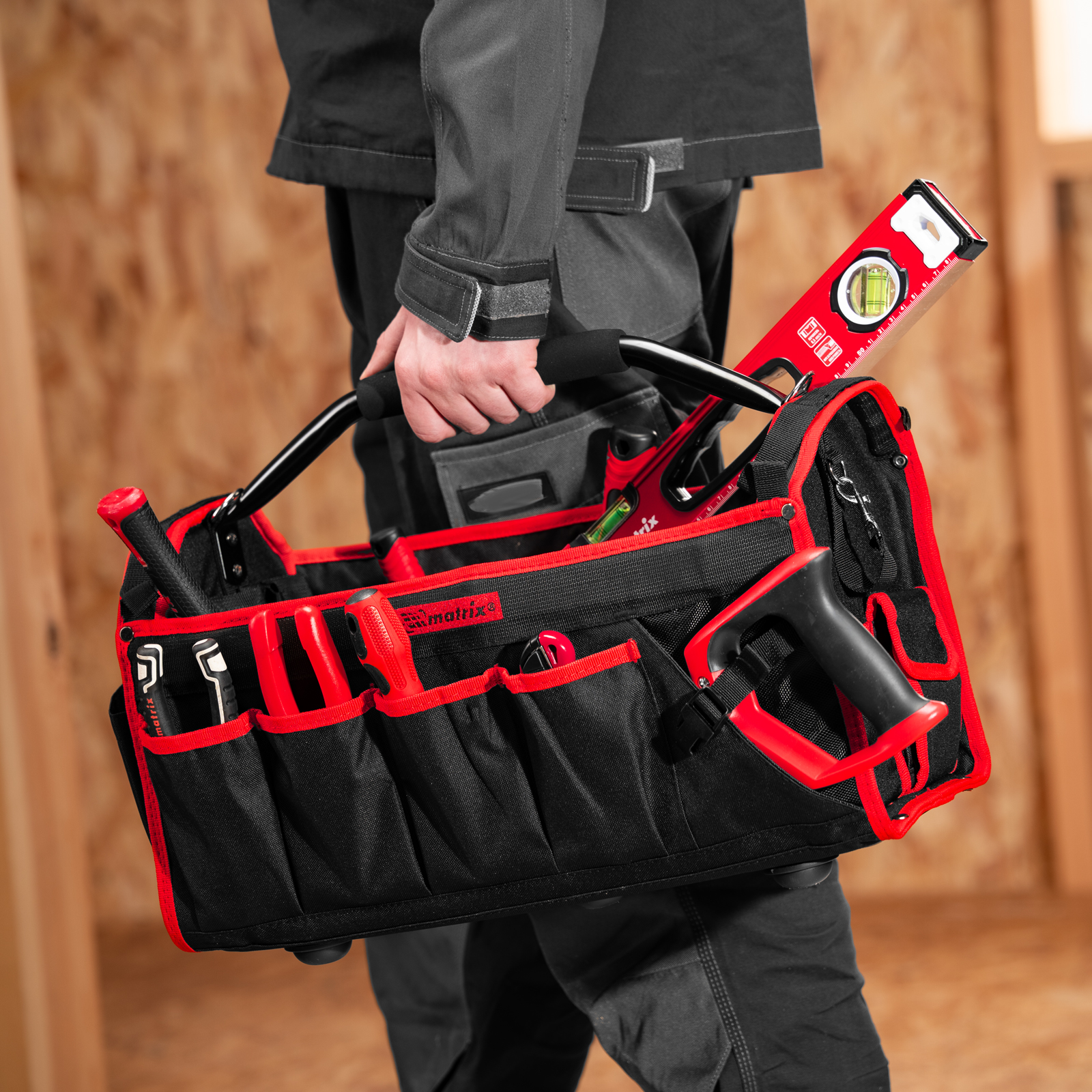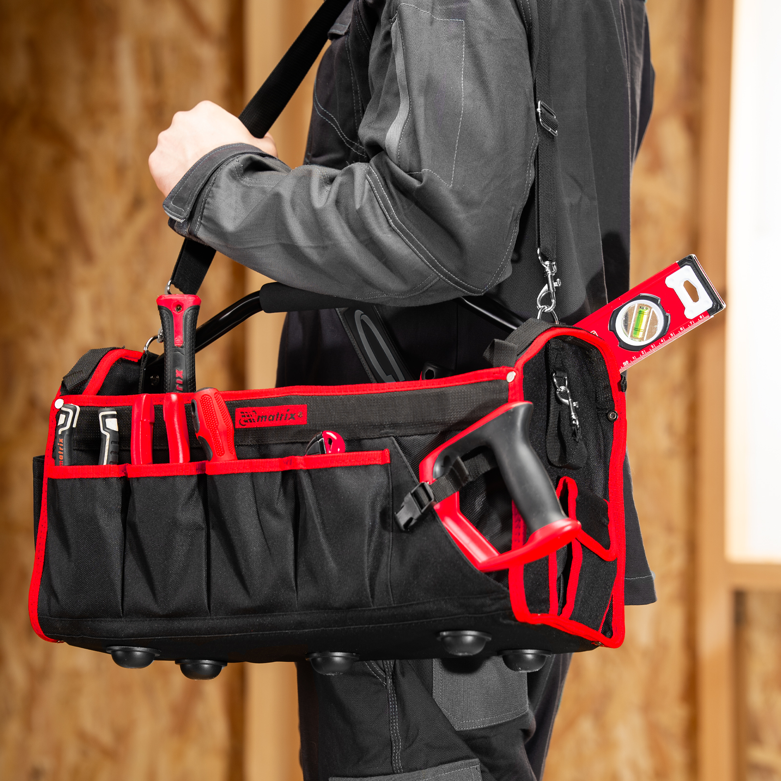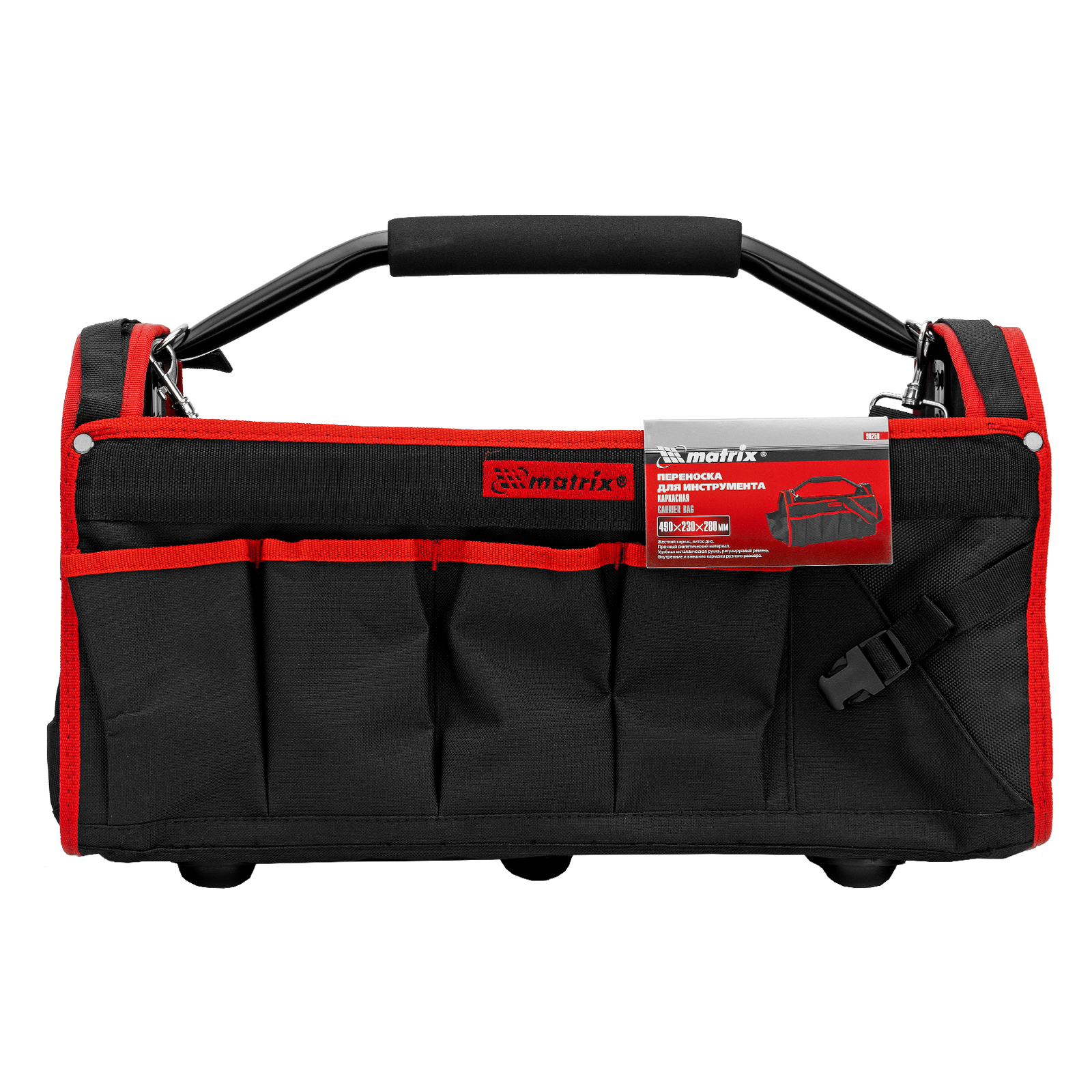 Каркасная переноска Matrix 90258 размером 490 х 230 х 280 мм удобна для перемещения и хранения инструментов. Имеет прочный каркас и весит 1,98 кг, ее легко транспортировать благодаря регулируемому плечевому ремню. В удобных карманах можно расположить все необходимые инструменты. Переноска пригодится дома, в гараже или в поездке.